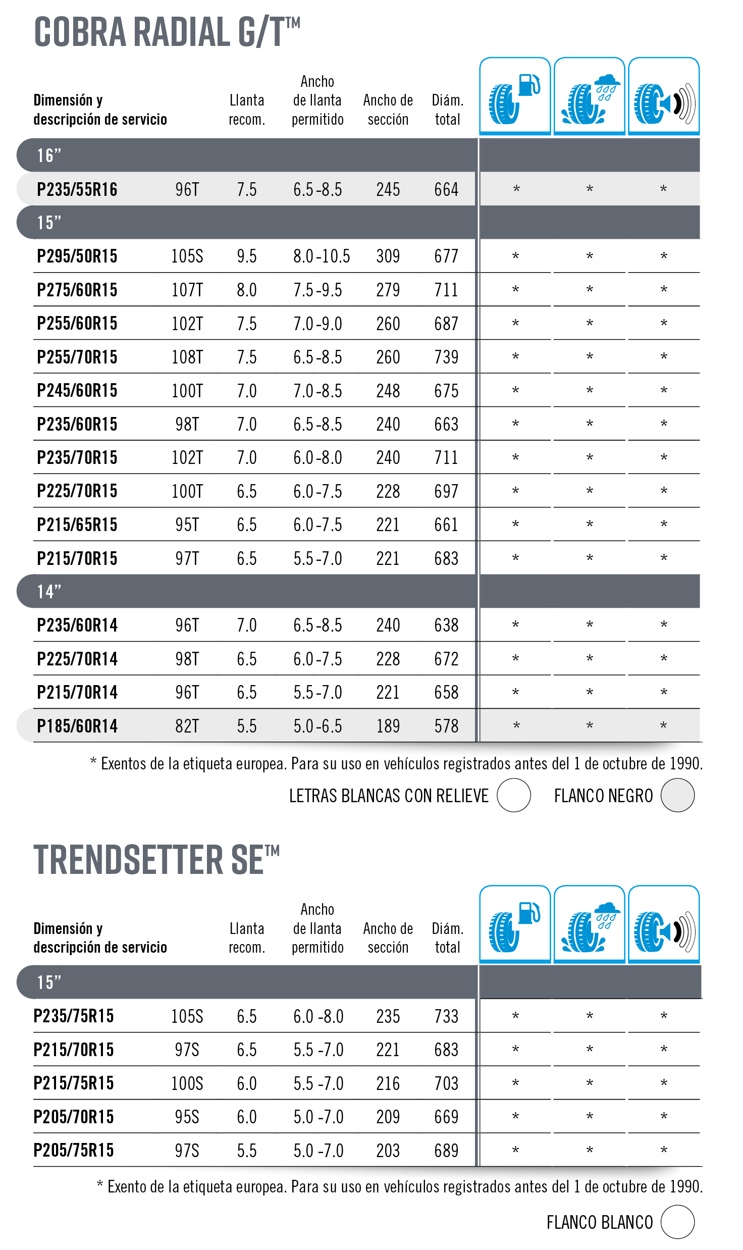 MEDIDAS COBRA RADIAL G/T™ Y SE™