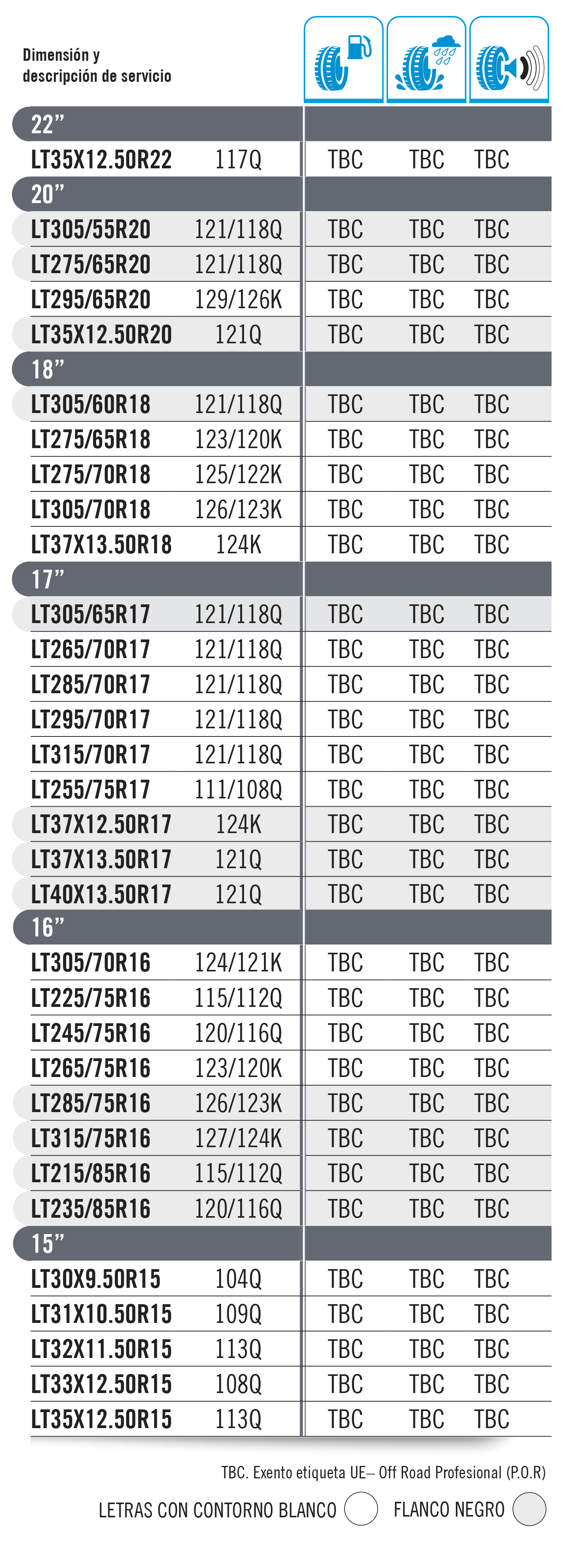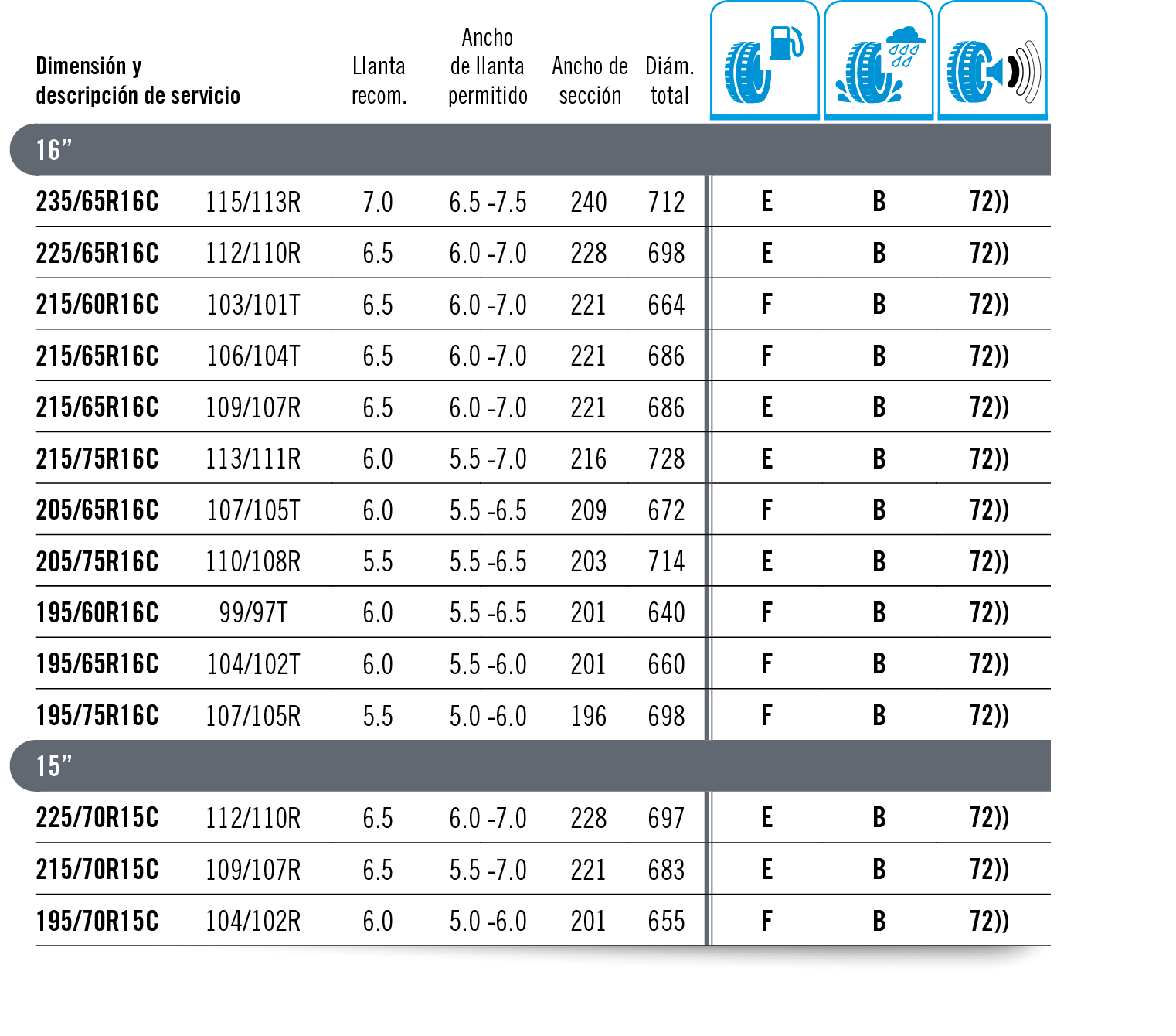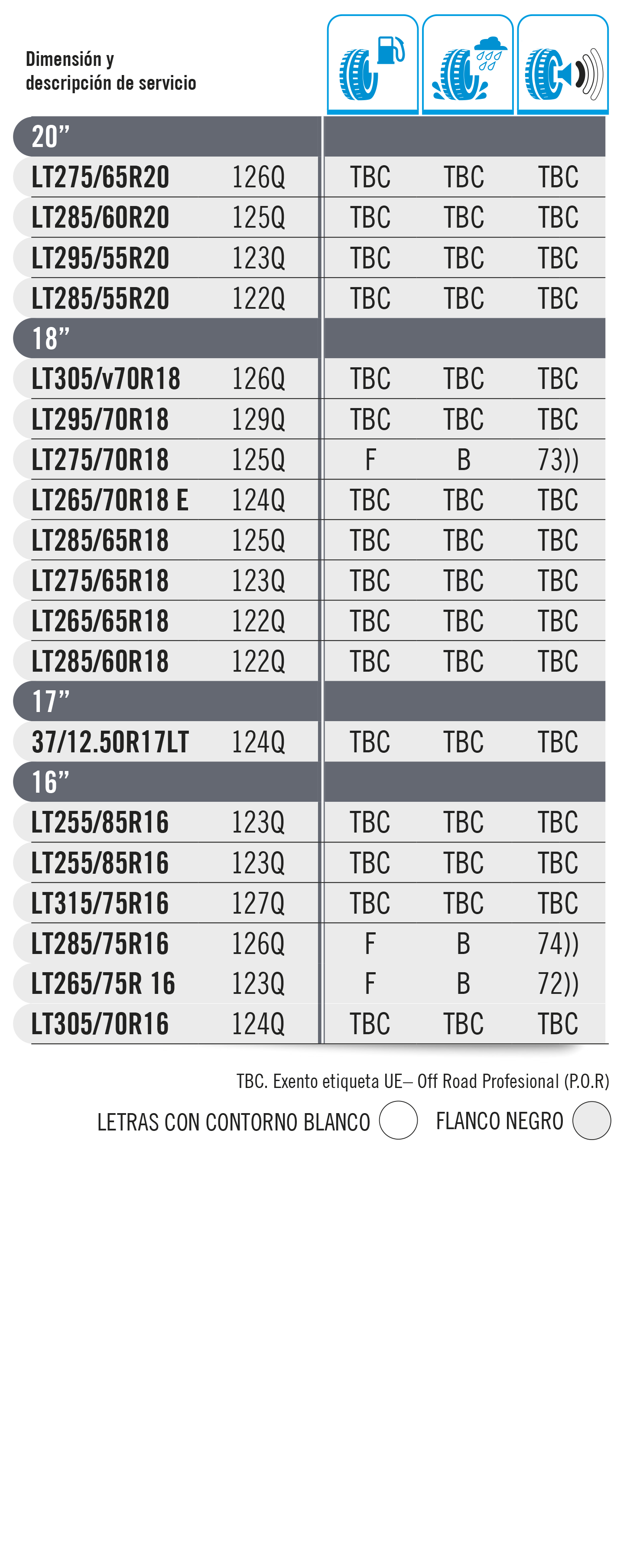 Identificador del tipo de neumático: Cada neumático debe exhibir un identificador único.