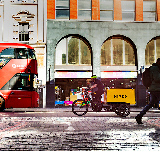To better understand what powers the industry-changing startup that wants to bring good service, affordable pricing, and eco-friendly delivery to the world, the team traveled to the HIVED headquarters. Here, we learned more about the “HIVED Mind” and the company’s innovative tech platform that gathers data to make its deliveries as efficient and as green as possible. Then we headed to the depot, where we tagged along with HIVED drivers and cyclists, completing deliveries to happy customers across London via the multi-vehicle, yellow-and-black, 100% emission-free HIVED fleet.