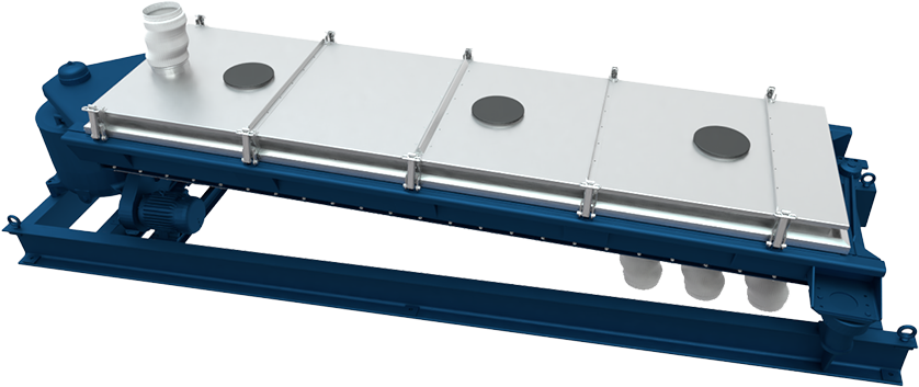 Patented adjustable clamps ensure uniform sealing of cover and screen decks. The screens are attached using Rotex tensioning clips, which automatically draw the correct tension on the screen clothing.