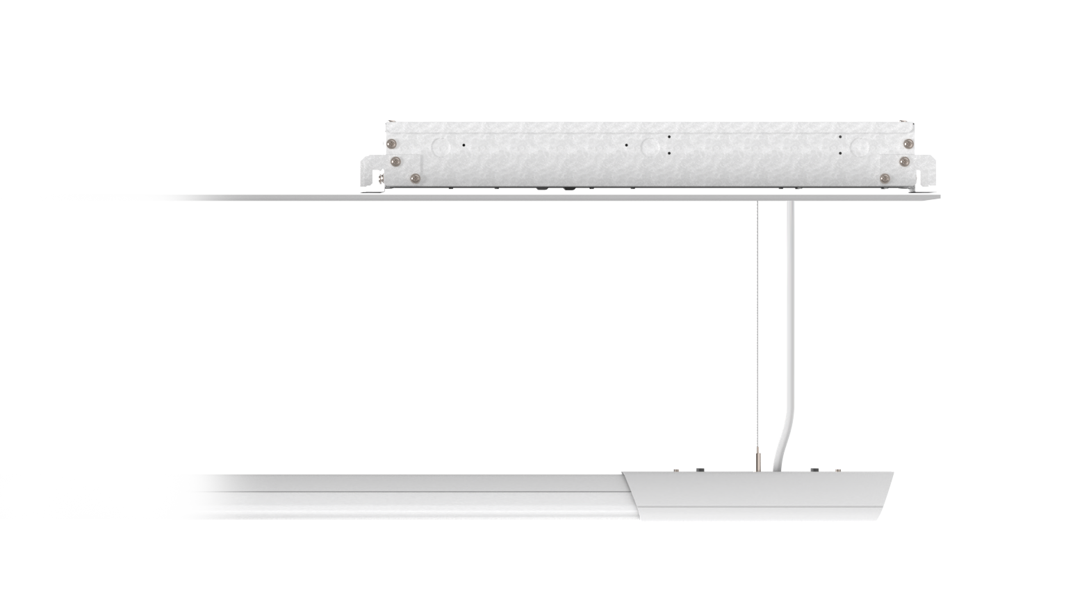 Mounted in the plenum for configurations with EldoLED drivers, 347v transformers, or IOTA emergency battery options.