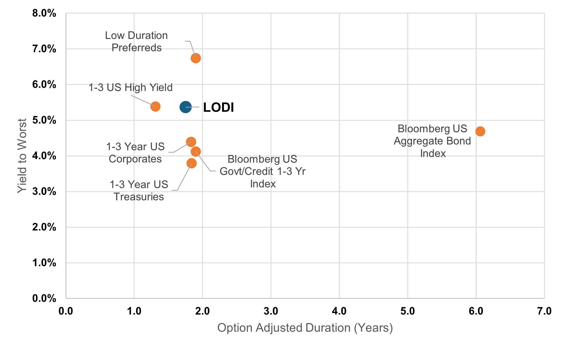 LODI seeks to be duration neutral relative to the Bloomberg 1-3 Yr Gov/Credit Index