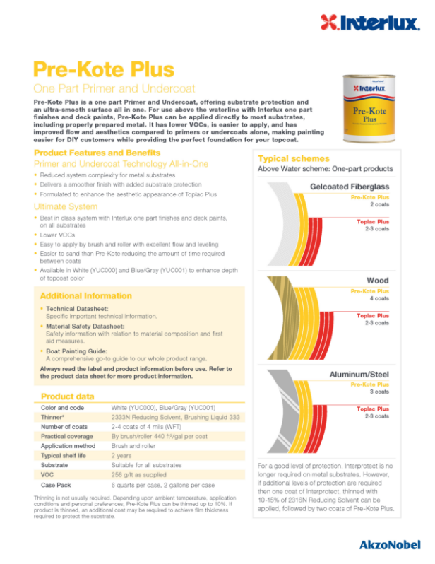 Apply over Pre-Kote Plus, our improved one part undercoat and topside primer all in one, with substrate protection, an extra smooth finish, and lower VOCs.