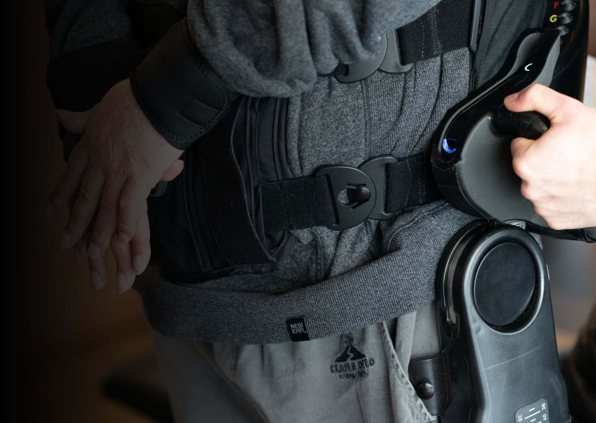The original SAM Suit prototype was built on existing exoskeleton technologies. With electronically guided support for his torso, arms and lower extremities, Sam was able to stand and walk for short distances under the watchful eye of a safety assistant.