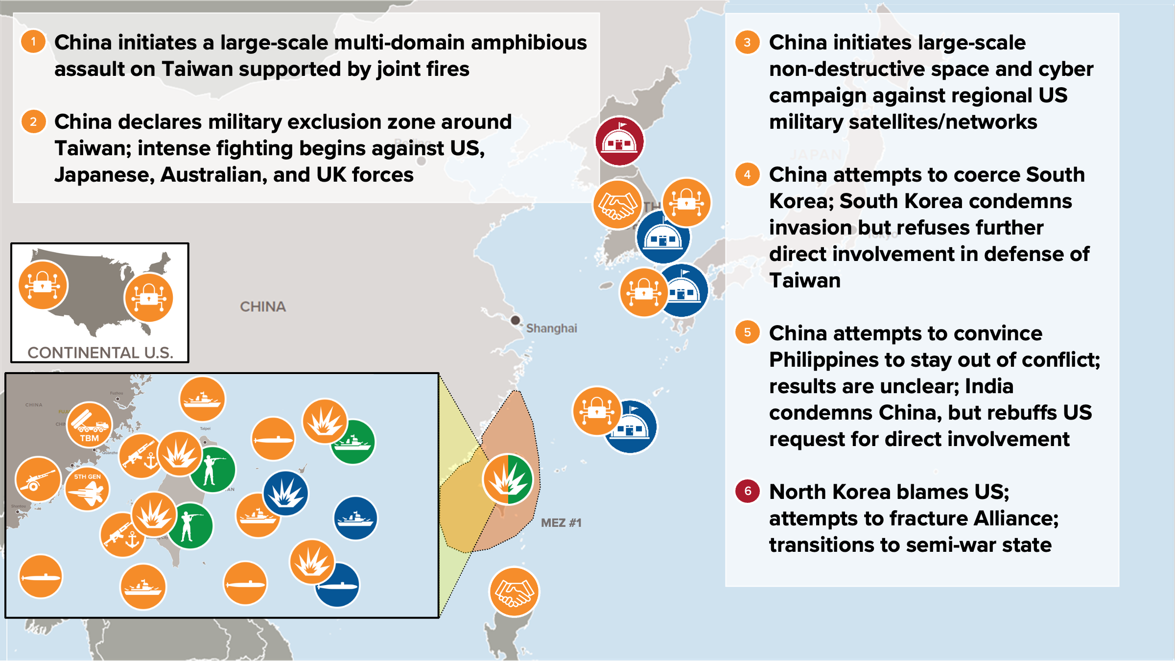 China attacks Taiwan and attempts to isolate it from the potential support of US allies