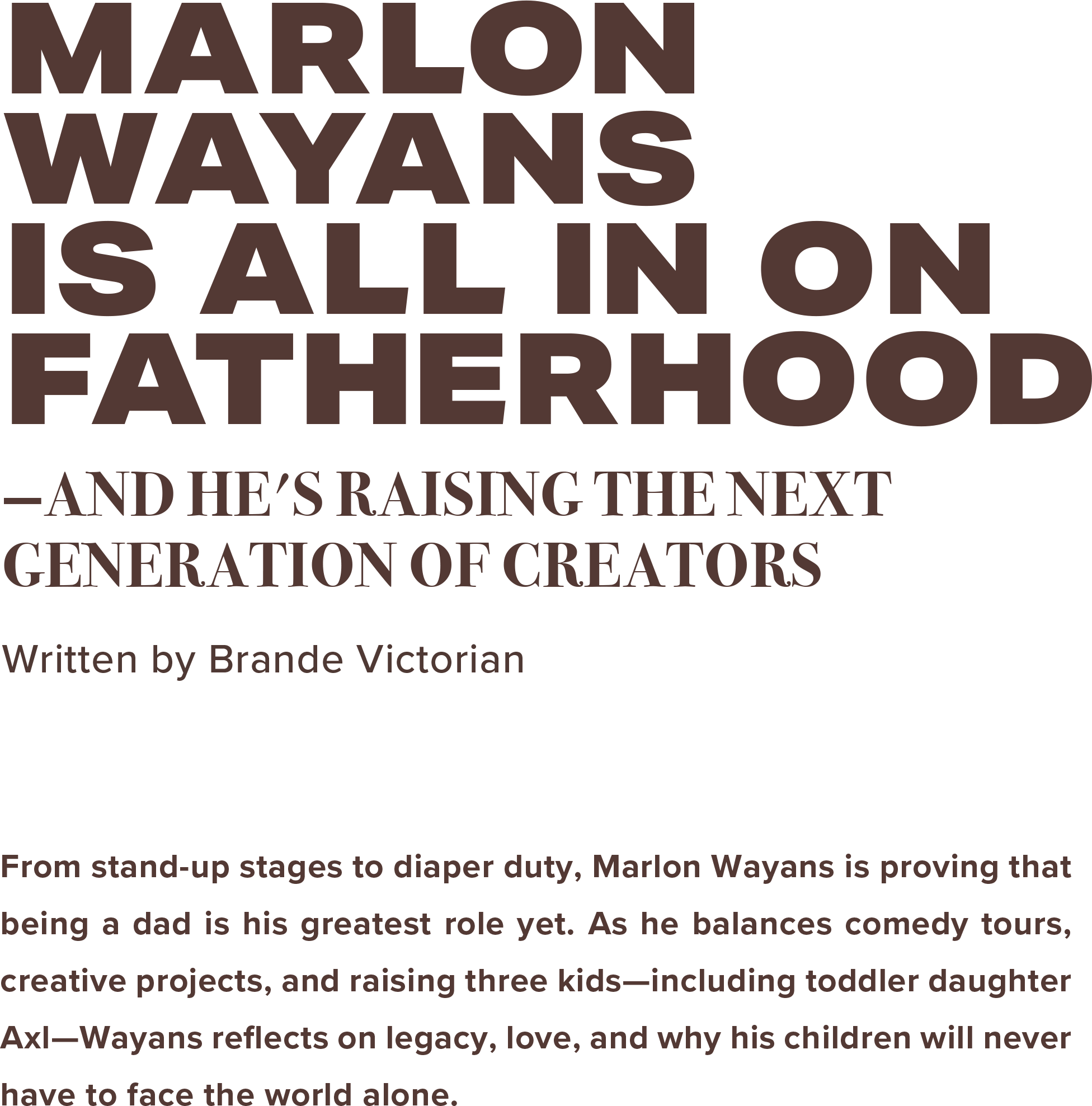 oments before capturing the final looks of our Father’s Day shoot, Marlon Wayans casually strolls over to the grand piano in the mid-century modern Sherman Oaks home we’ve rented. He begins playing Stevie Wonder’s “Ribbon in the Sky.” The melody summons the crew who file around the instrument in unison, watching in awe that the baby of the incredibly talented