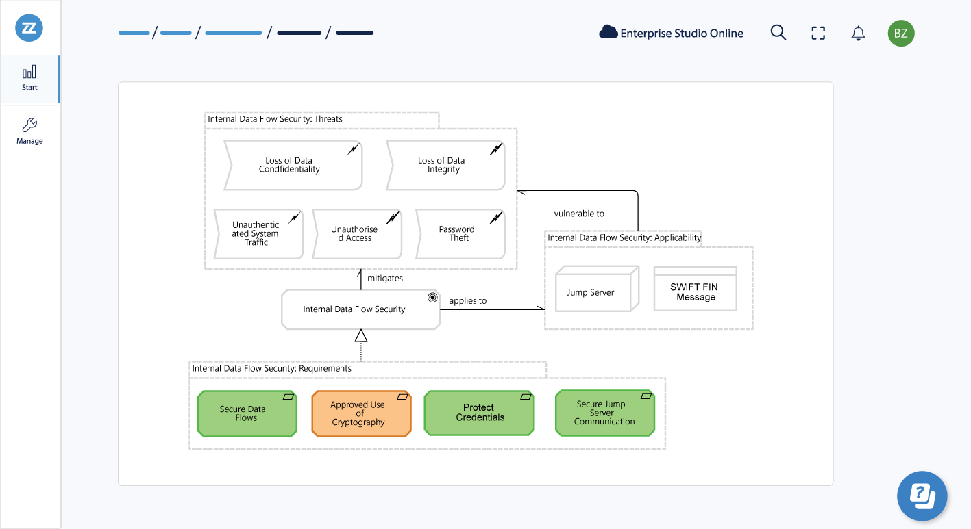 No, you don’t need to have experience of our Bizzdesign Horizzon platform. As part of the Swift CSP Compliance solution, we provide a guided design experience, including pre-packaged templates for modeling and example content that details design patterns.