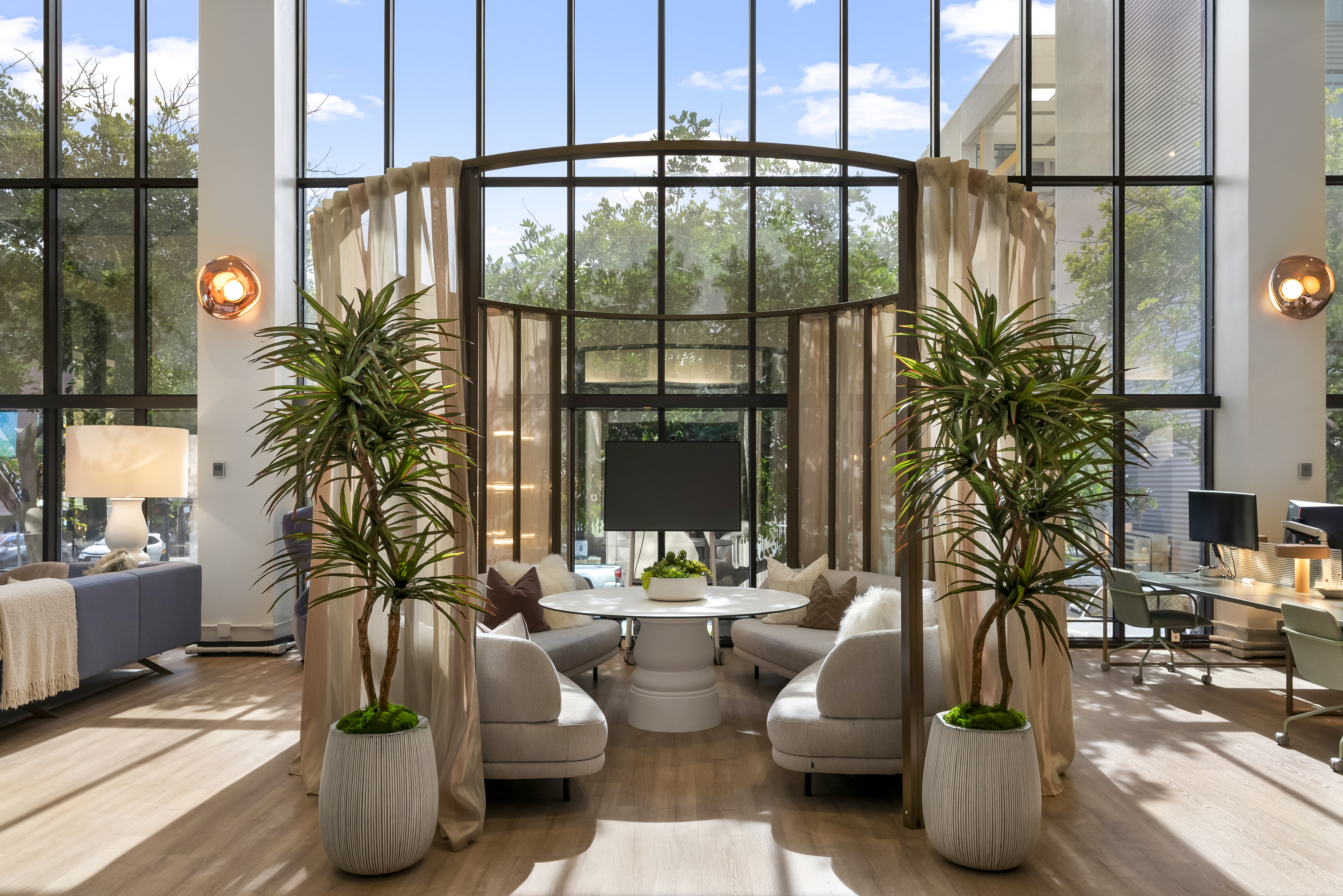 Without the infusion of Fringe, the space—while beautifully designed—would lack its distinctive character. Fringe transforms it into an experience, a destination, and a series of defined zones within the open floorplan. Subtle greenery delineates spaces, rugs introduce texture and ground the settings, and carefully chosen accessories reflect our brand and story. Fringe also enhances the sensory journey: a custom scent greets visitors upon entry, while soft, ambient music creates a warm and inviting atmosphere. Every detail was thoughtfully curated to ensure a seamless and immersive experience.