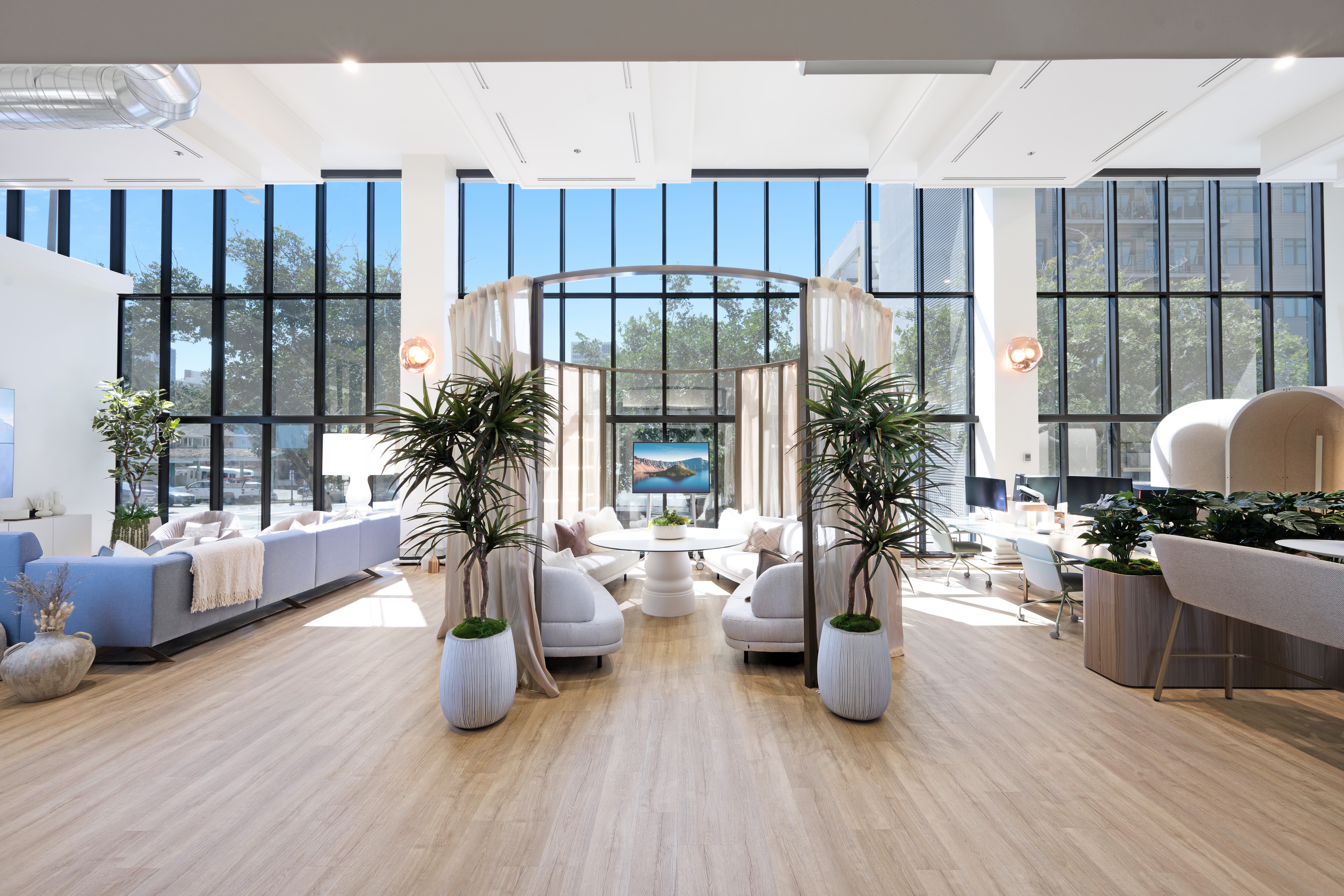 REVERIE, located in the heart of downtown San Diego, is an experiential showroom designed to respond to the ever-evolving office landscape. Serving as a hub for inspiration, client engagements, events, and the future of work, REVERIE redefines the workplace through a hospitality lens, addressing the new meaning of the office, evolving team needs, and rising client expectations. By seamlessly integrating layers of furniture, technology, and decor, it demonstrates how the spaces where we work profoundly influence how we work, creating an environment where people can come together and perform at their best.