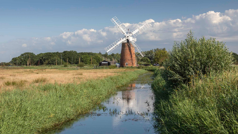 The Horsey Broadland in Norfolk offers a walk to the beach and back, following grassy paths and tracks, encompassing low-lying grazing marshes, sand dunes, and a narrow sandy beach, with the chance of seeing grey seals.