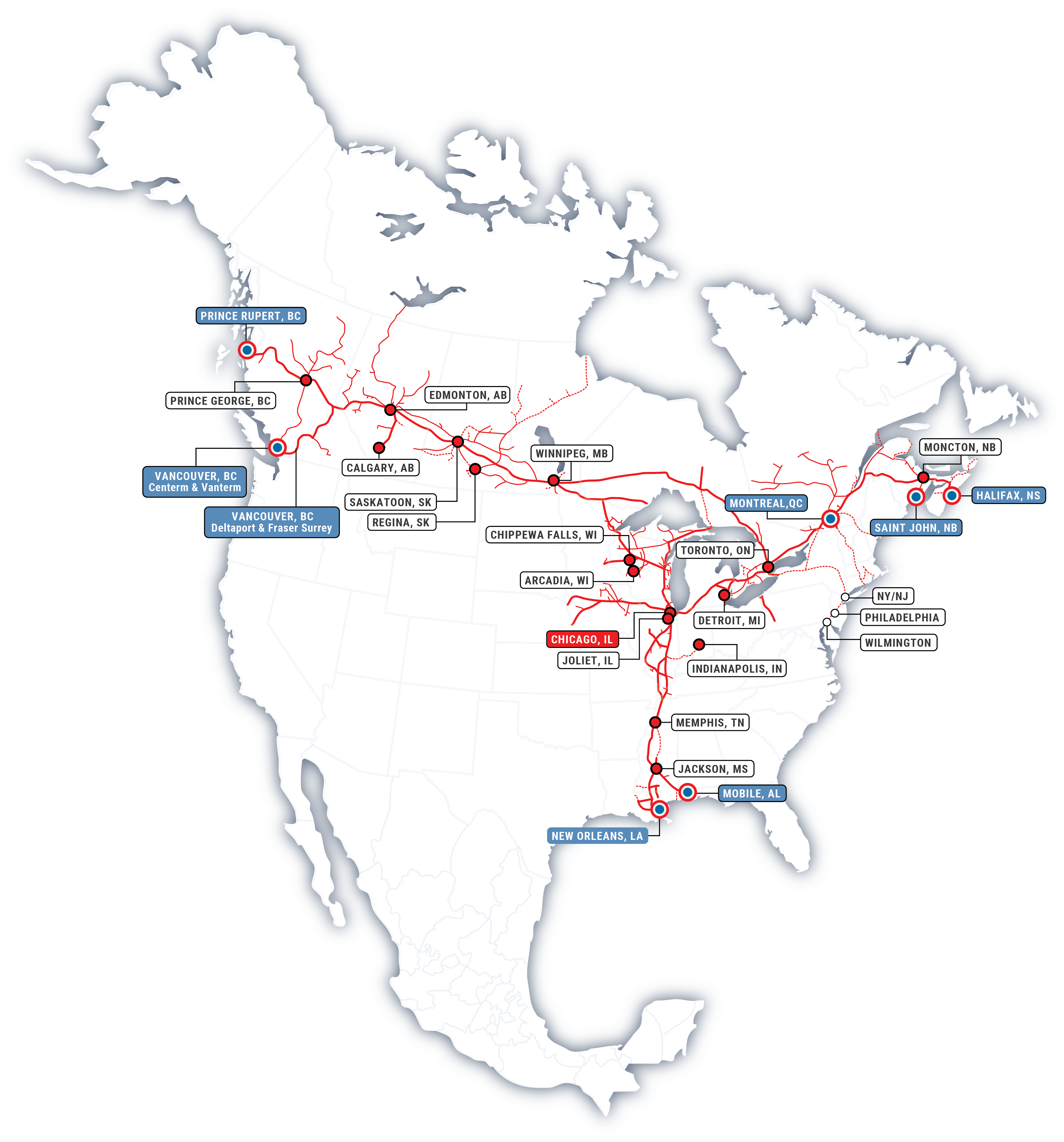Chicago is a critical supply chain link for CN. More than 500 freight trains pass through the region daily, and CN's rail ring route takes cargo around the city, rather than through it, to cut the congestion for our customers. As an important rail hub for the U.S. Midwest, CN has invested in a terminal to plan for future growth while ensuring current terminal operations remain fluid. The new Chicago Logistics Hub is set to open in 2026.