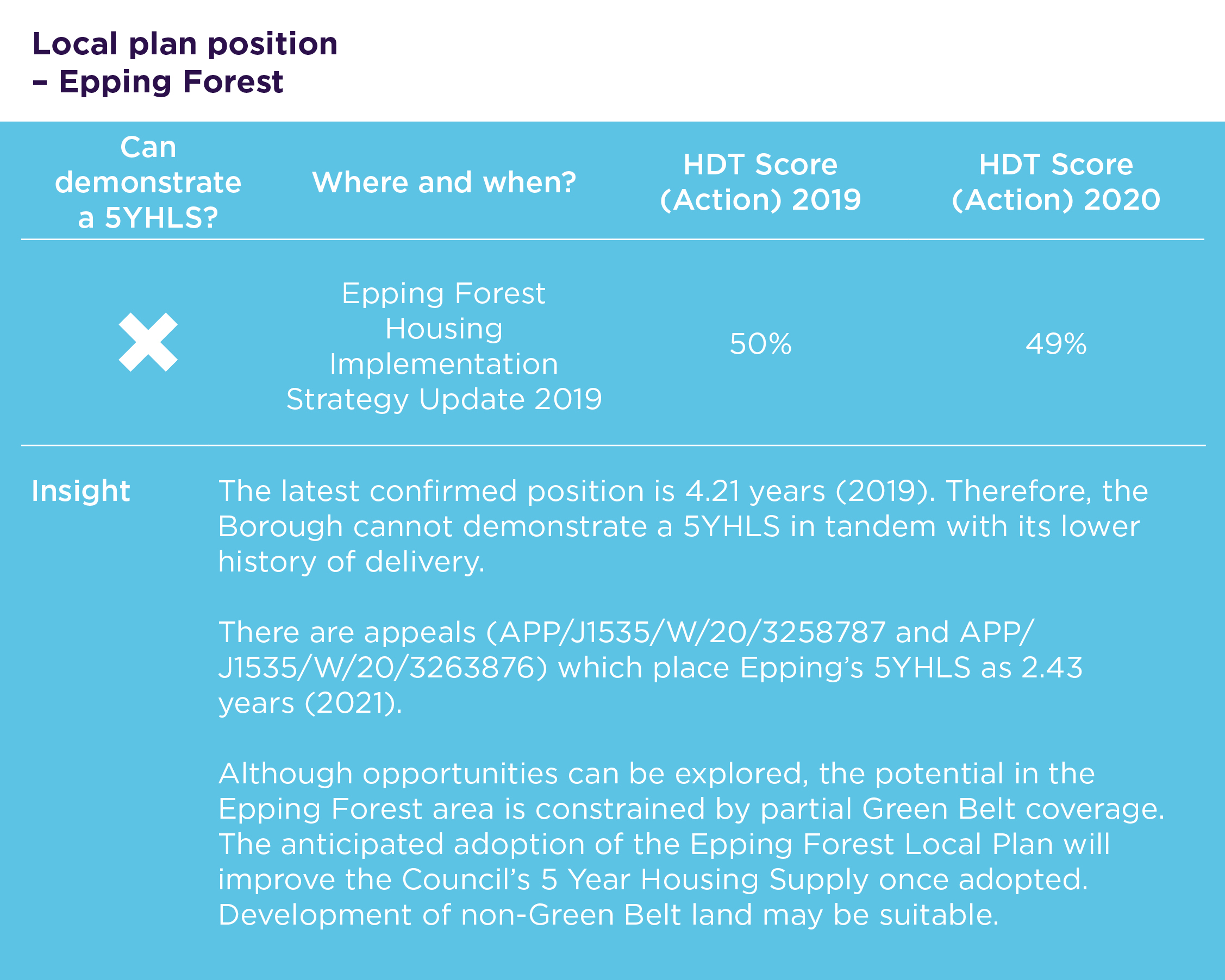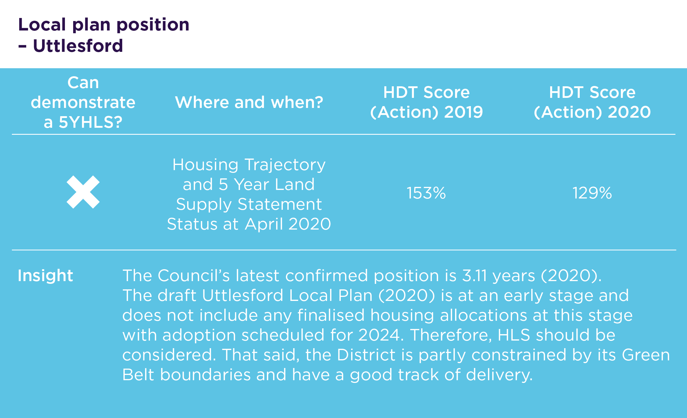 5-year housing land supply and recent Housing Delivery Test (HDT) results for the Hertfordshire authorities.
