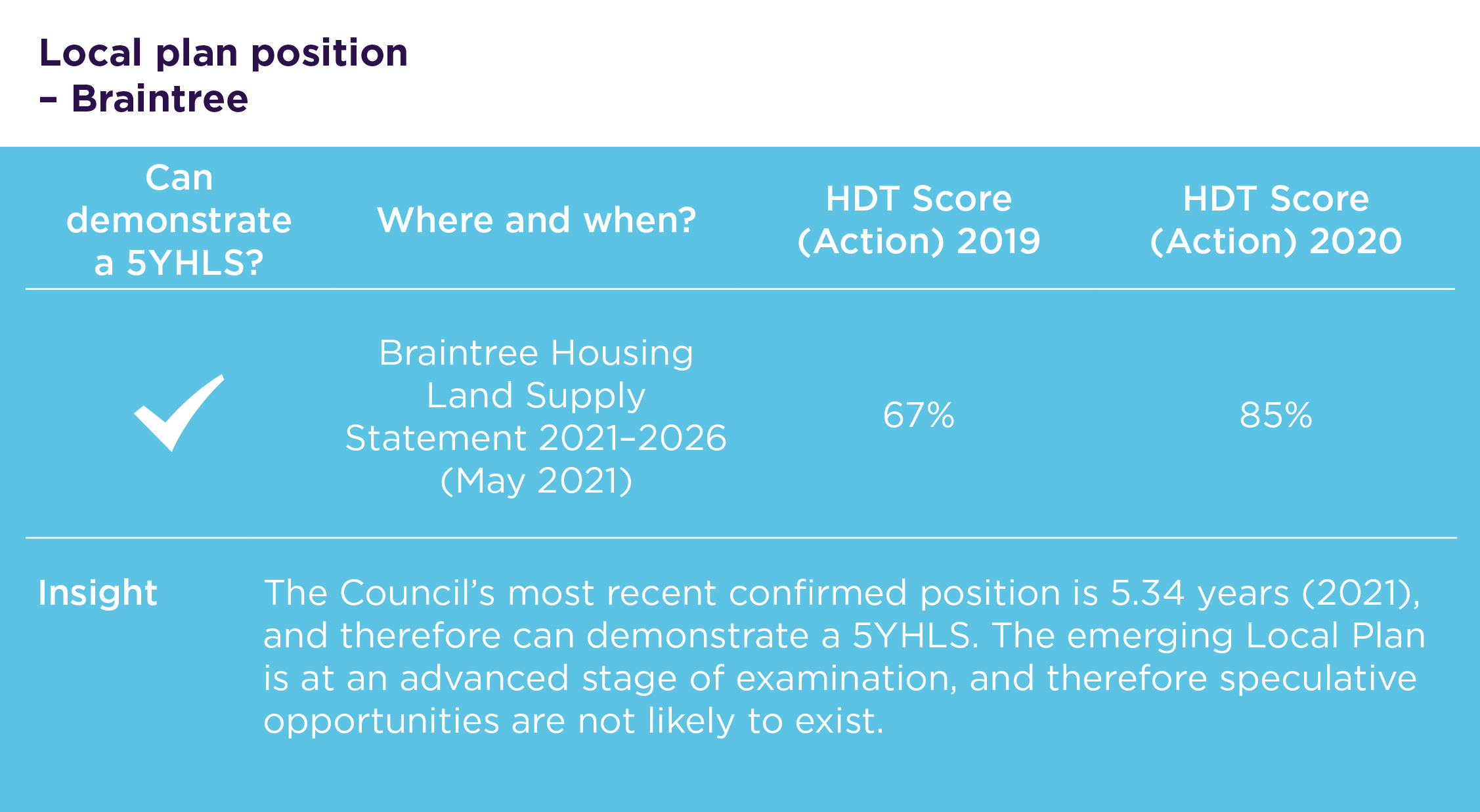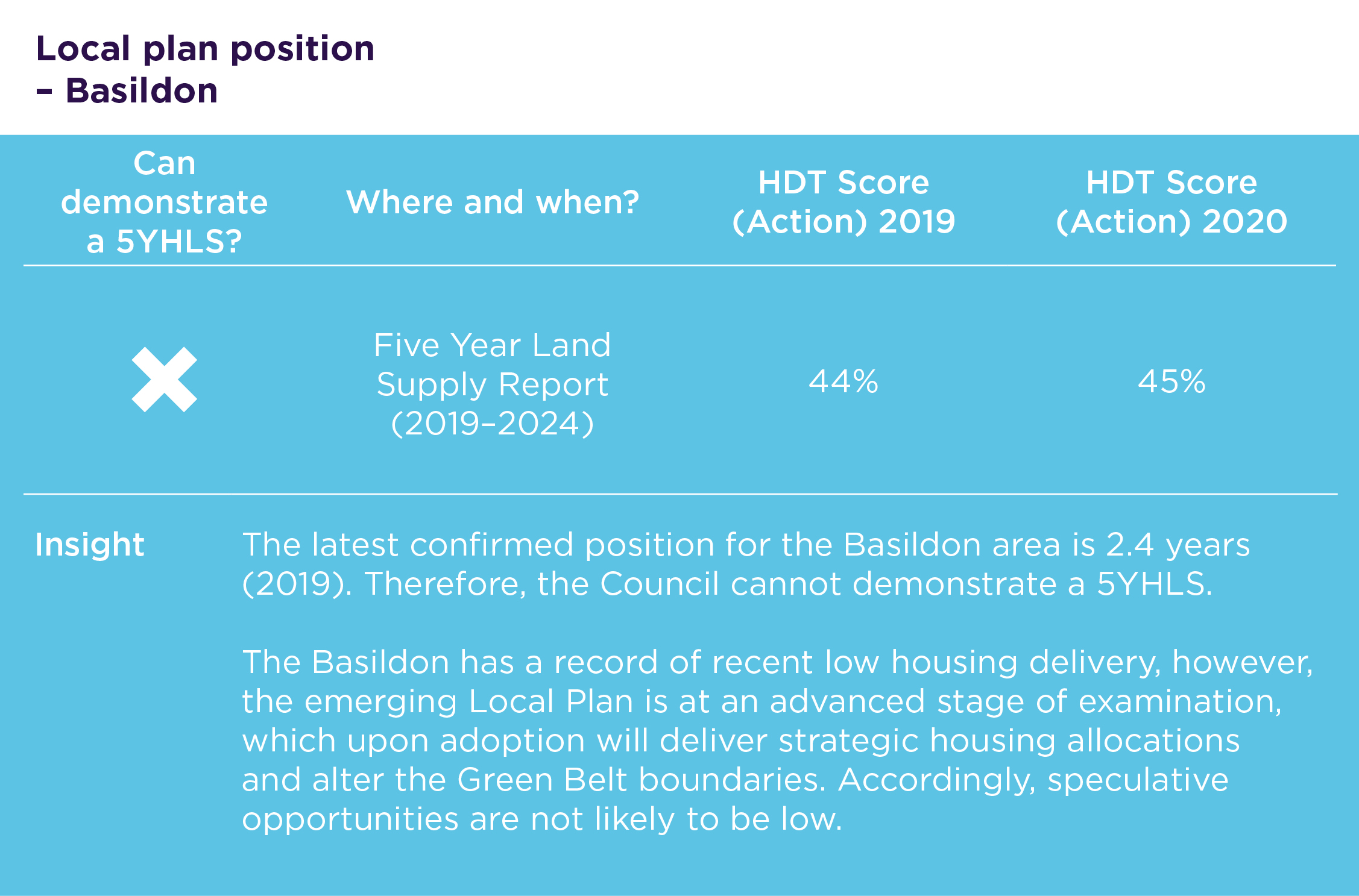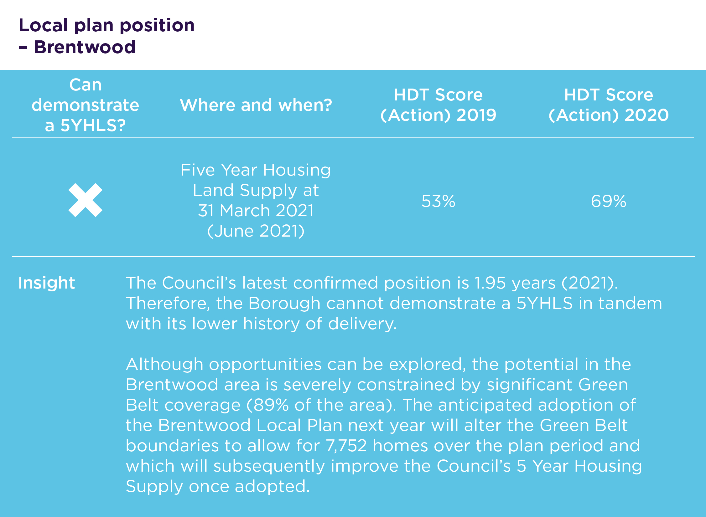 Select a section of the map below to reveal the Local Plan position, 5-year housing land supply and recent Housing Delivery Test (HDT) results for the Essex authorities.