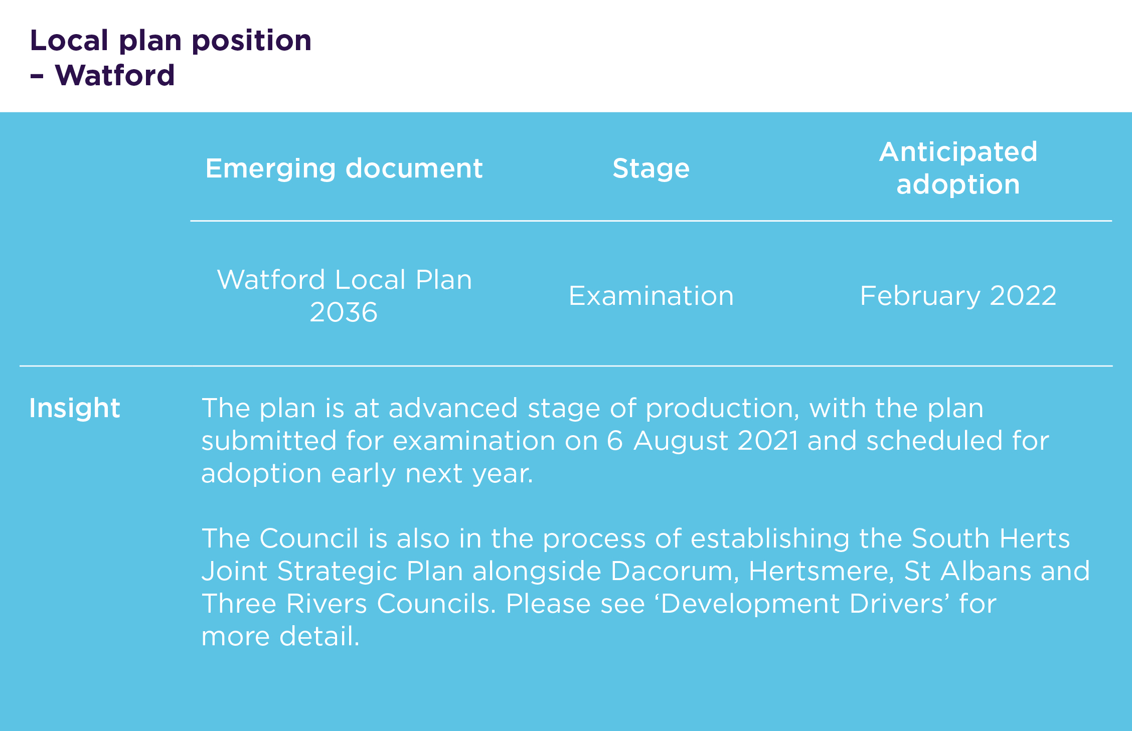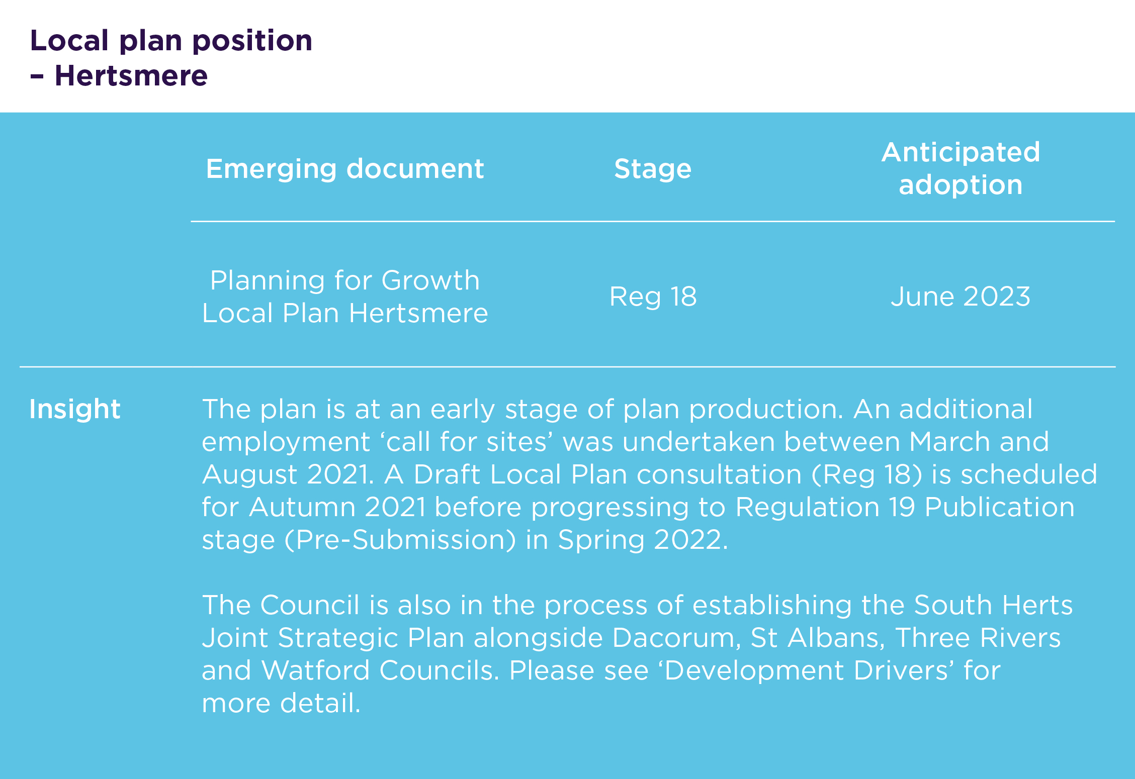 In Spring 2018, Dacorum Borough Council, Hertsmere Borough Council, St. Albans and City District Council, Three Rivers District Council and Watford Borough Council (with support from Hertfordshire County Council) agreed to begin work on a Joint Strategic Plan (JSP) for south-west Hertfordshire.