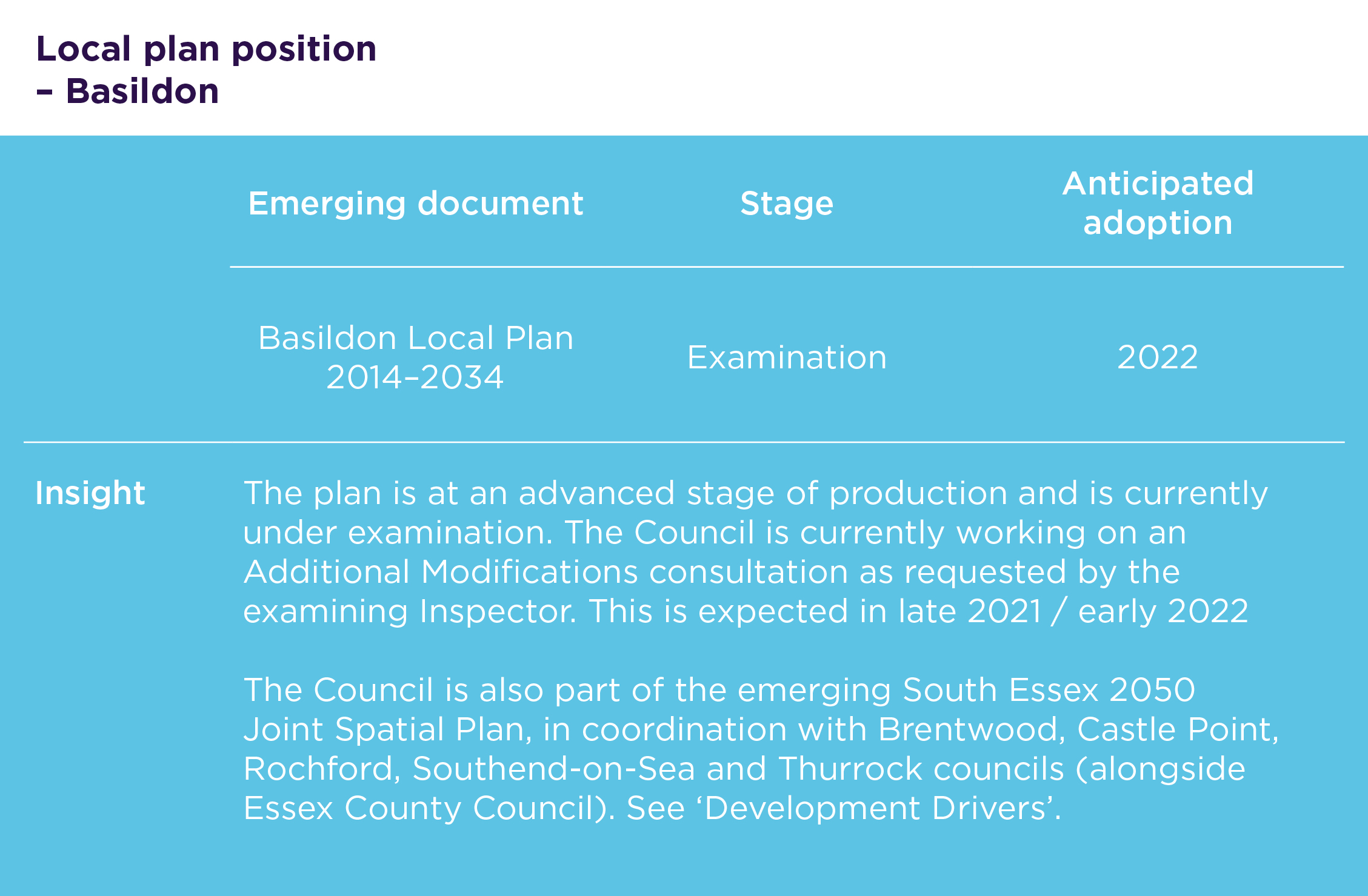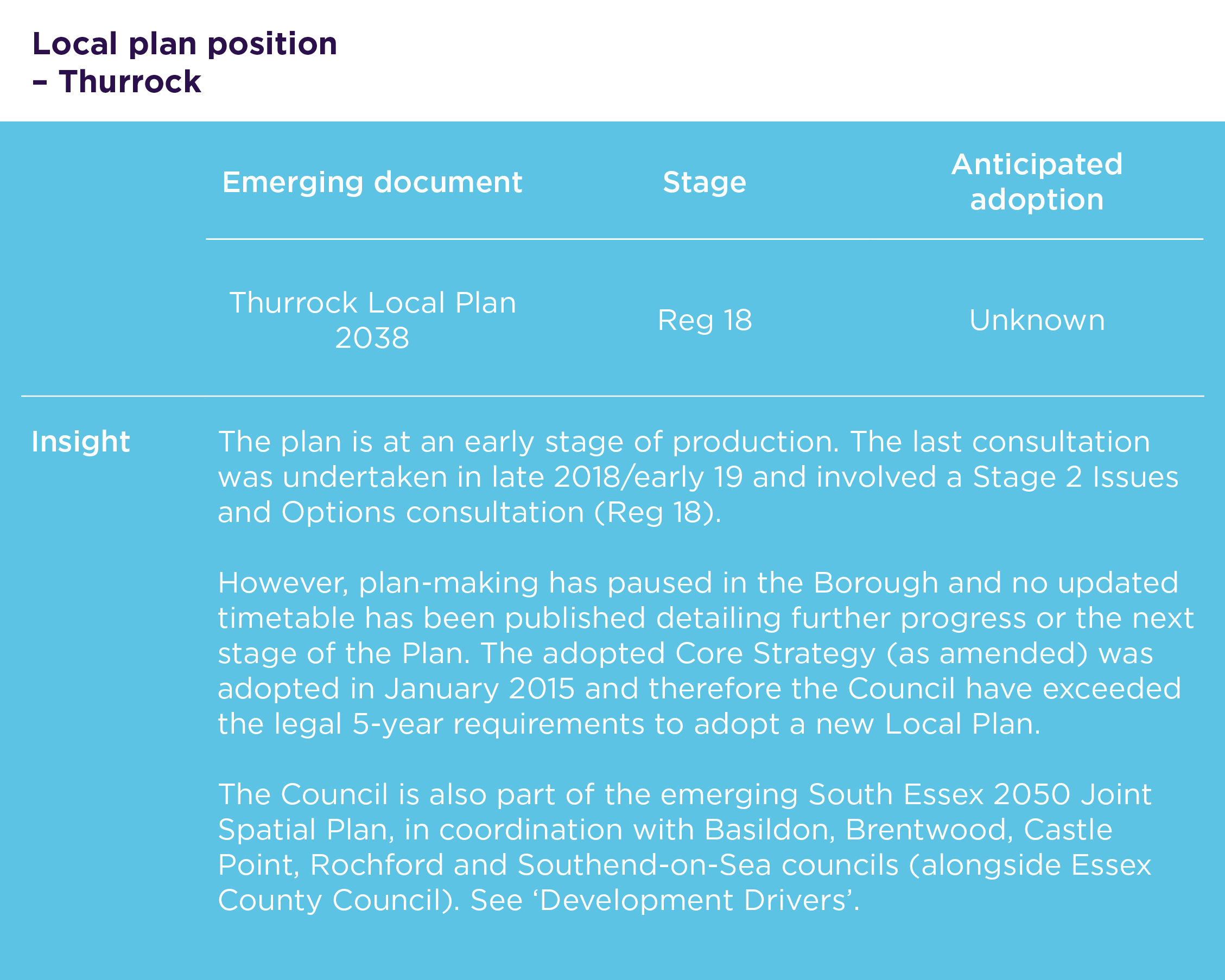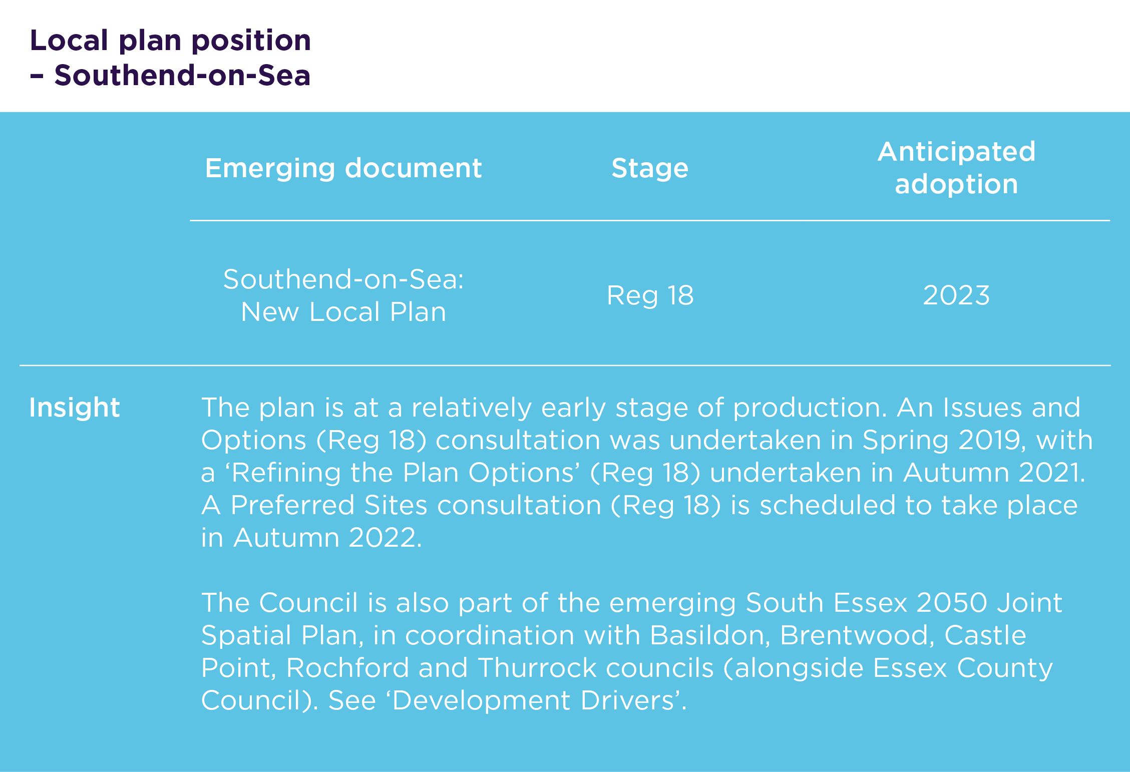 A significant issue for the South Essex JSP will be addressing excess housing need from Greater London (particularly in Thurrock) and finding suitable growth solutions to meet the needs of a heavily constrained Southend-on-Sea.