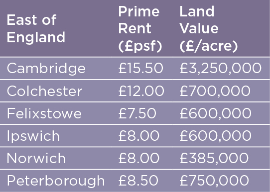 In many locations, prime rents have been flat over the last six months, but this is not uniformly the case. Indeed, some markets have seen exceptionally strong rental performance, particularly those where a healthy local economy has fostered demand and there is little standing stock or development. A good example of this is Norwich, where the prime rent has risen from £8.00 to £10.00 per sq ft.