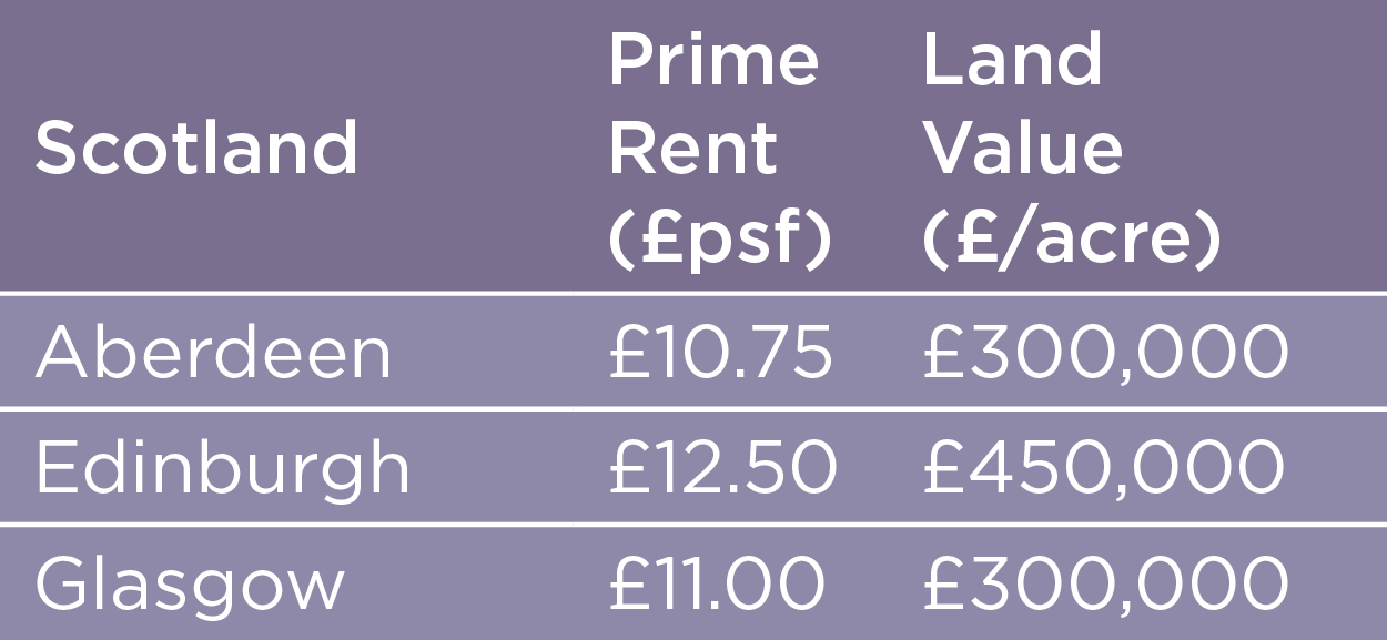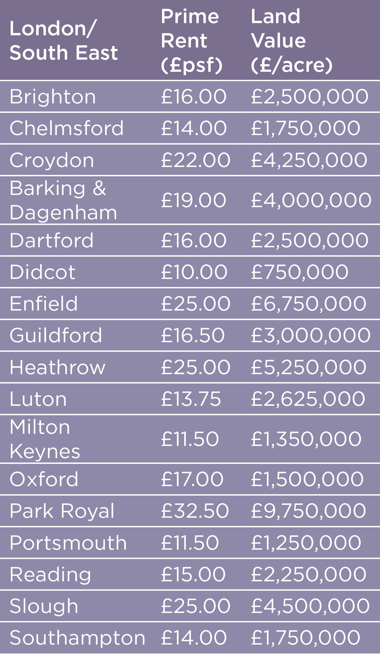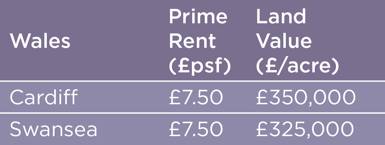 Land value: Based on land with an unrestricted B1(c), B2, & B8 planning consent with a 45-50% site cover and in a prime location. Also based on no abnormal cost for any environmental issues, site levelling or s.106 (CIL) commitments etc. All data estimated as of September 2023.