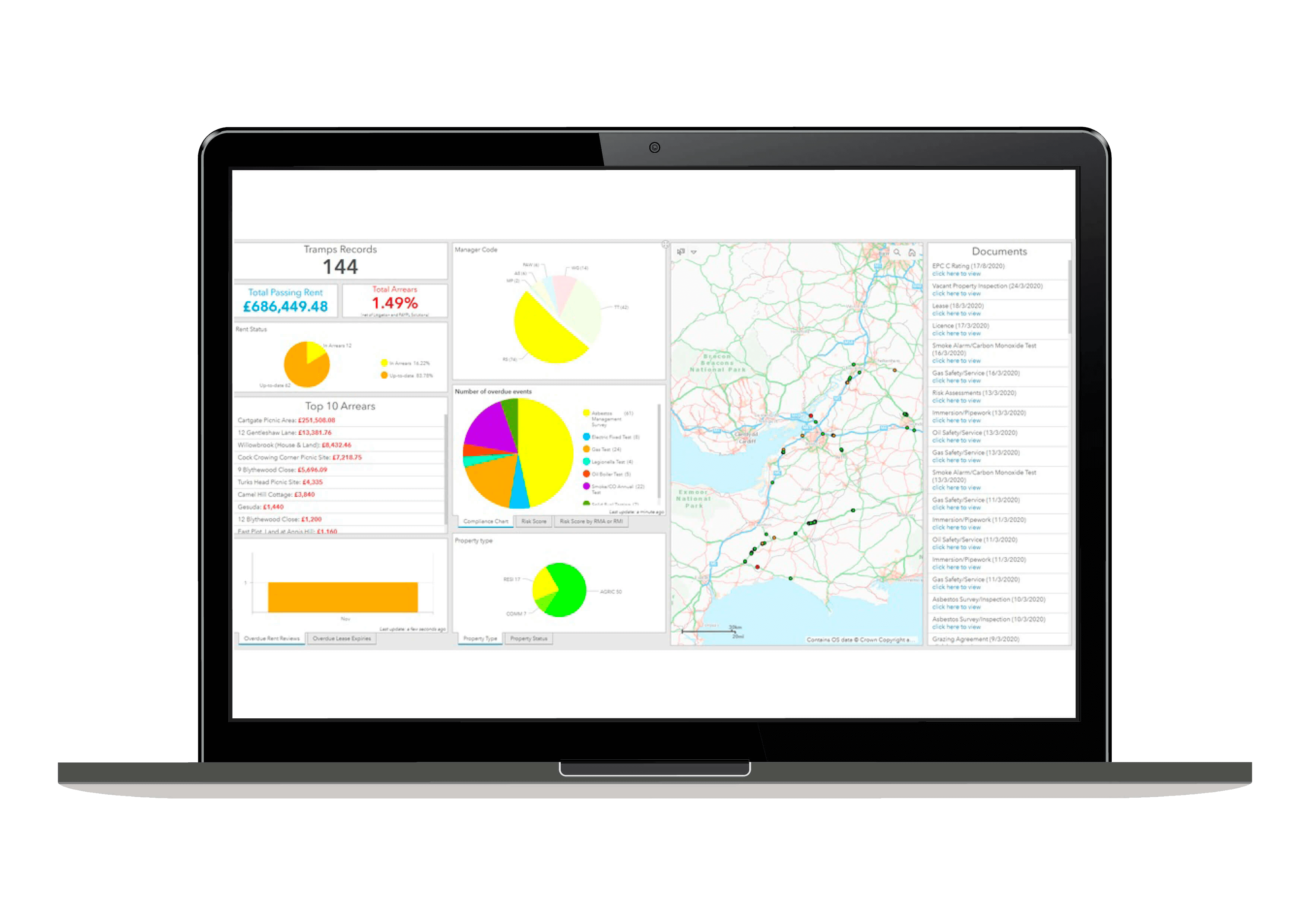 Easily see arrears, rent review and maintenance dates, and more. This aids estate and portfolio management