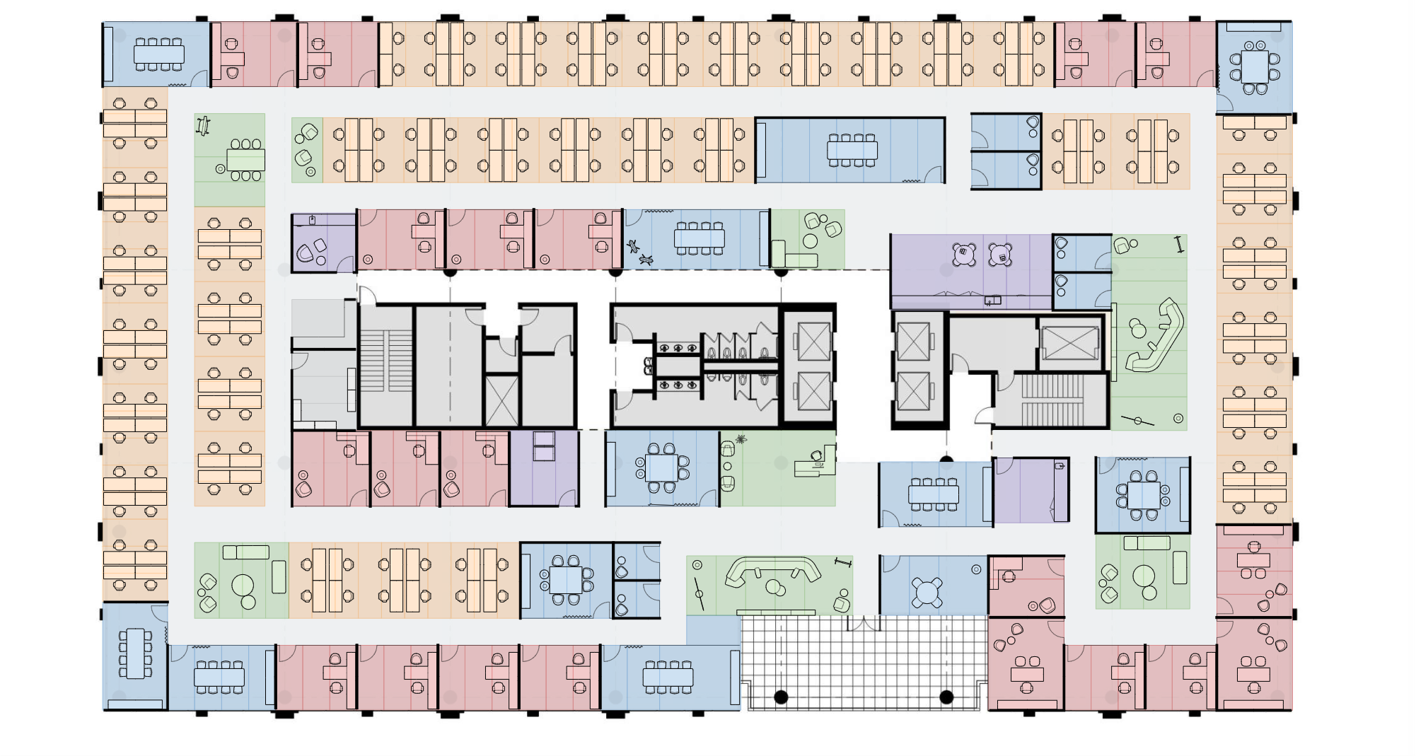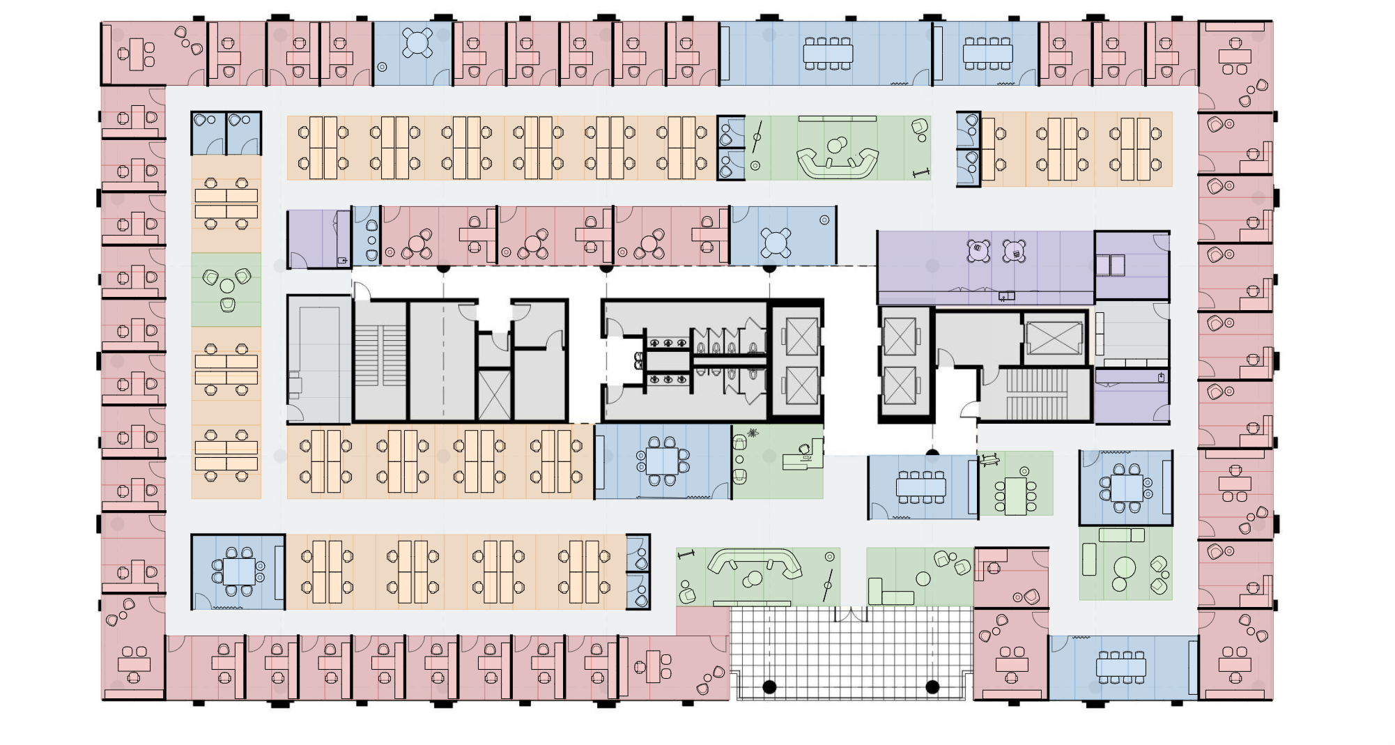 Hyper-efficient floor plate offers a flexible canvas, perfect for your company’s ideal layout. Maximize space and productivity with endless configuration possibilities.