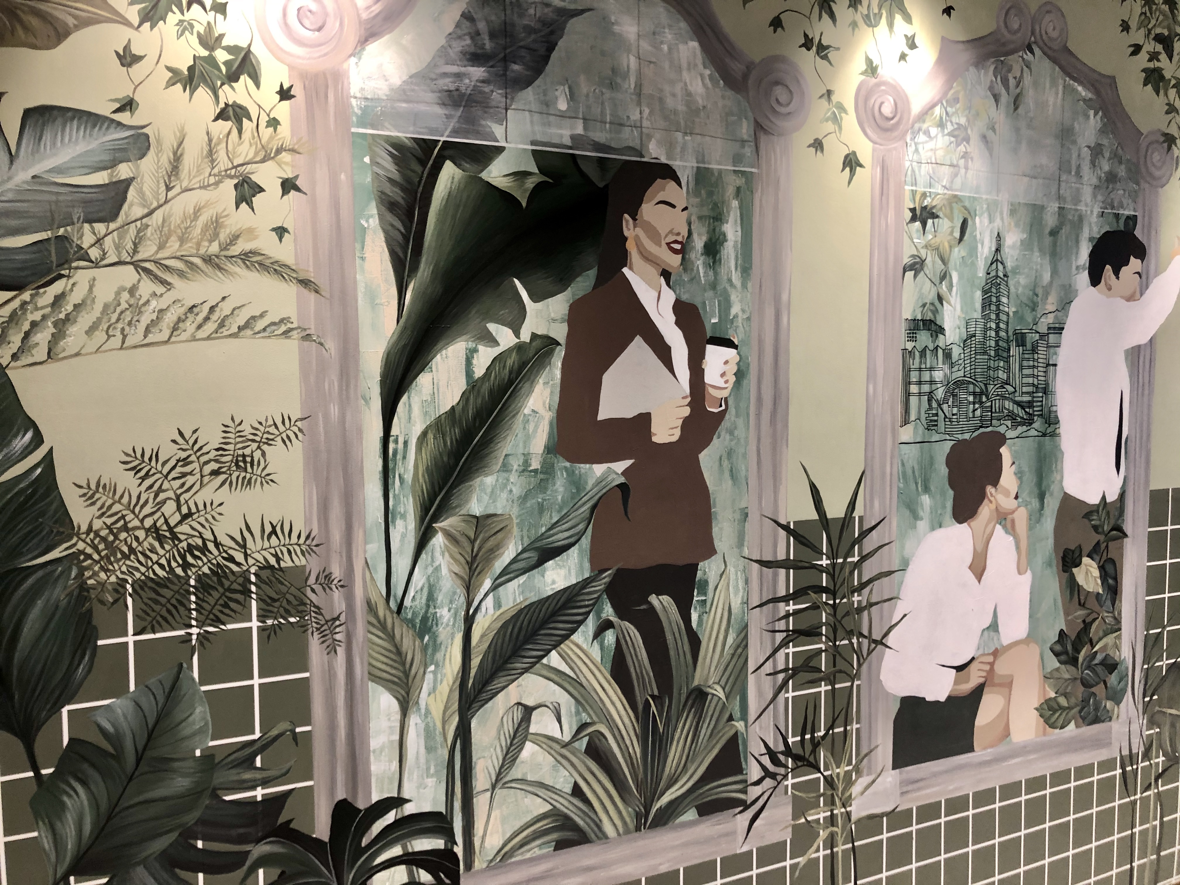 Murals painted by talented local artists that capture the City & Park theme with blank spaces for employees to participate and build content over time.