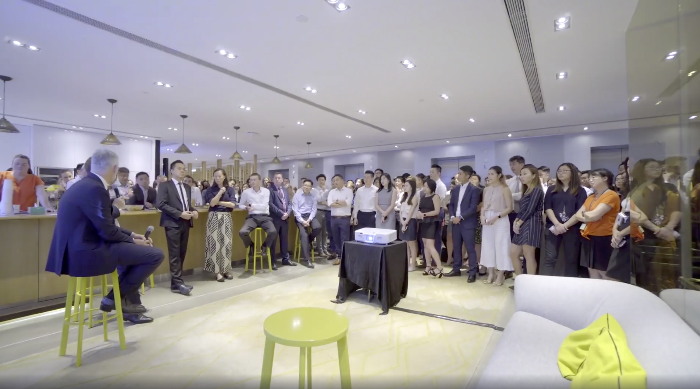Needing to be in two locations while building ONE CBRE atmosphere. Thanks to technology, we can connect two locations via our huge screens – first I’ve seen in Asia!