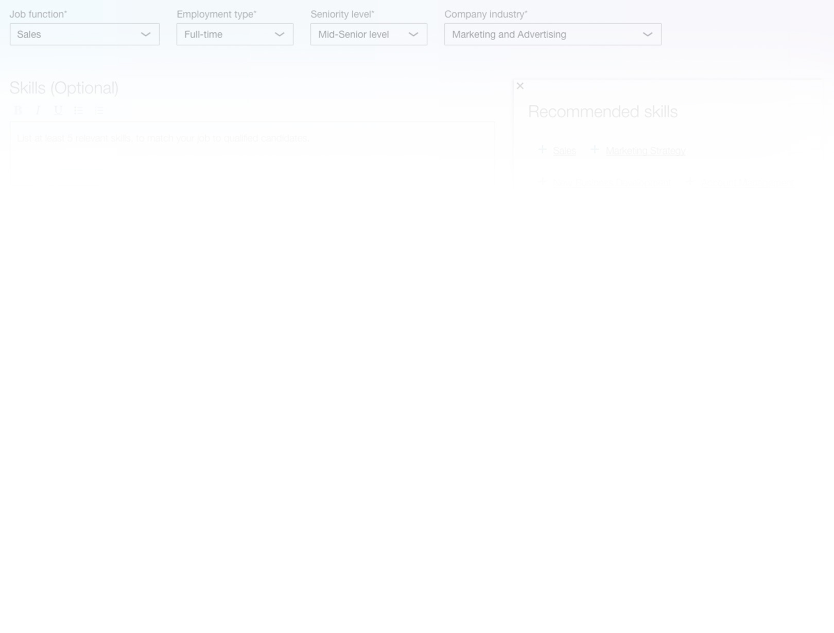 LinkedIn Job Posts suggest skills and degrees as you write your job description.