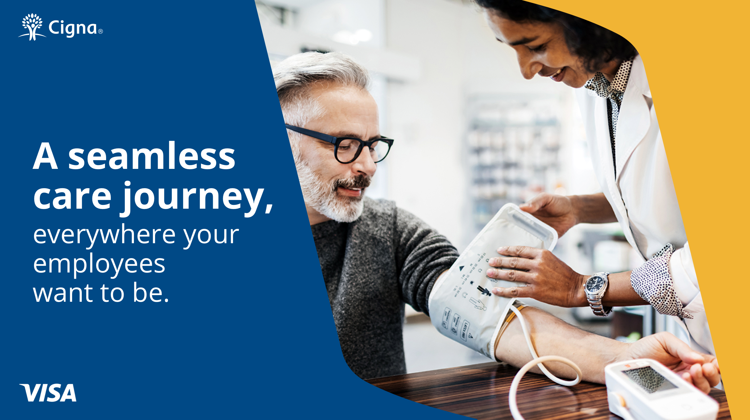 When the health of your employees is on the table, there is a lot to consider. We’re excited to further our relationship with Visa and show what makes Cigna the right partner. Because more than a health partner, we’re a growth partner. That’s why we’ve invested in data-driven, innovative technology that can tailor holistic recommendations to each of your employees and actively engage them in their health to provide purpose. So each individual – and your workforce as a whole - always feels valued and supported. Let’s grow together!