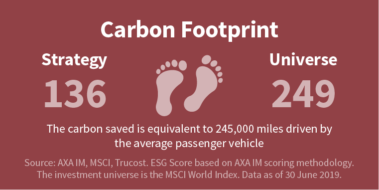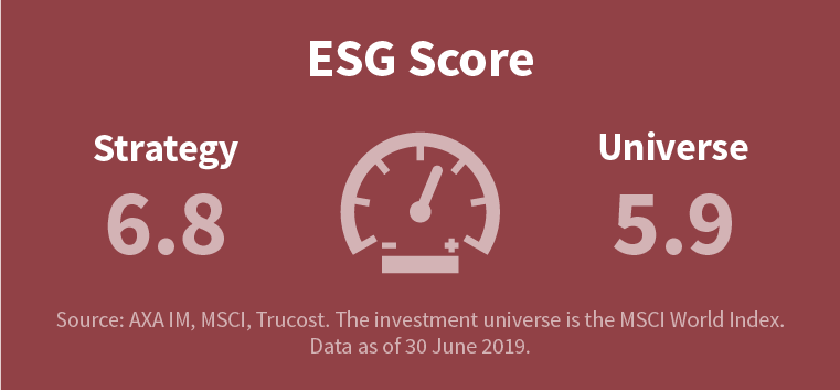 We further improve the fundamentals of the portfolio by incorporating ESG information for every stock we cover. We believe that ESG information is vital to understanding a company’s future prospects, and is therefore important to be considered alongside its quality and volatility characteristics. We ensure that the strategy meets the AXA IM ESG Standards, and delivers a better-than-benchmark ESG score and improved carbon/water intensity. As active stewards of your assets, AXA IM also actively engages with the companies we invest in.*