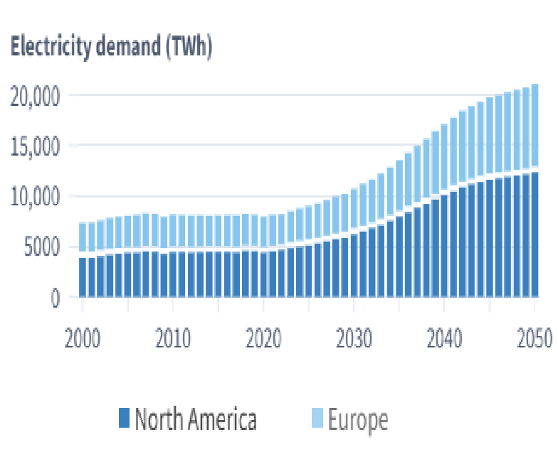 Aumento de la demanda de electricidad en Norteamérica y Europa