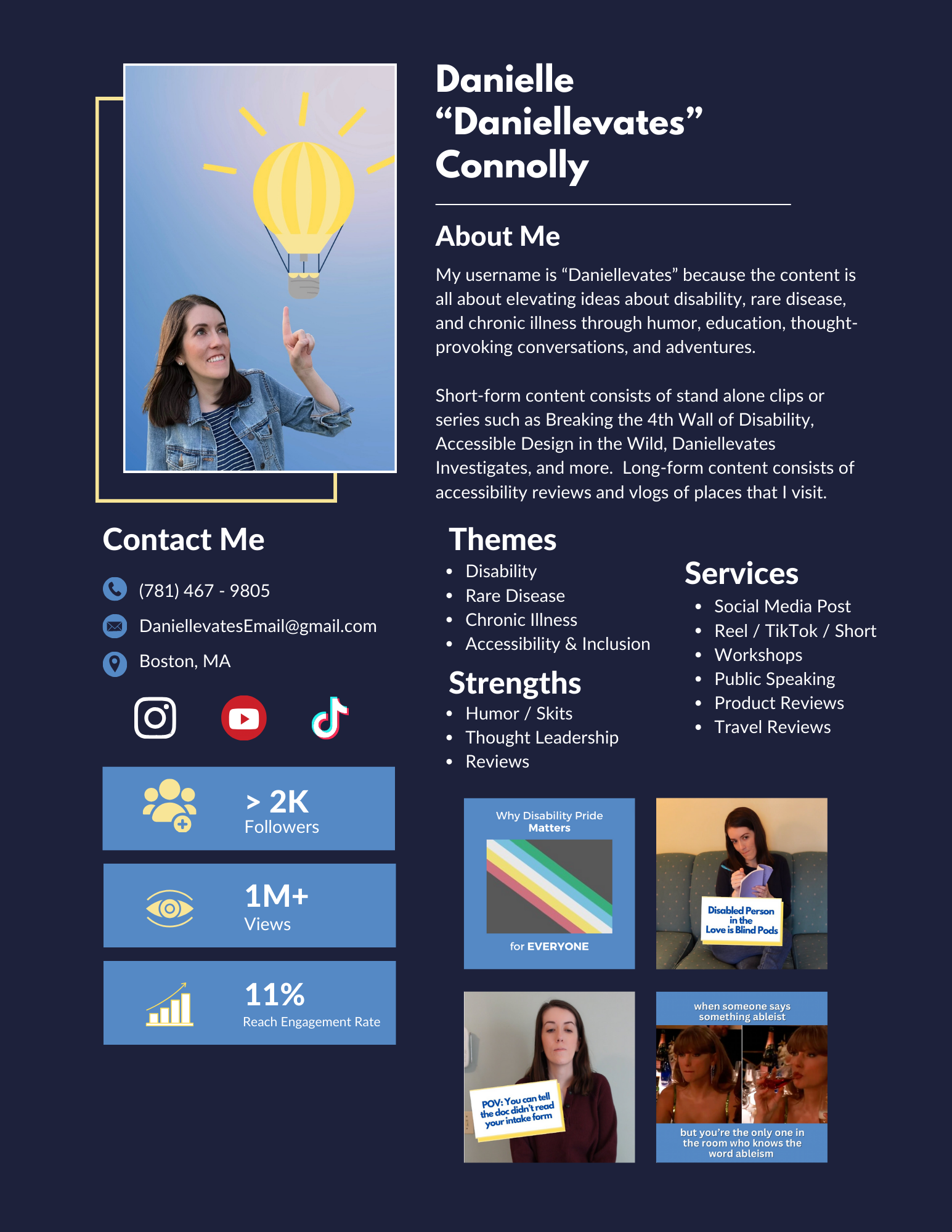 Self-employed content creator creating content that elevates ideas about disability, rare disease, and chronic illness.