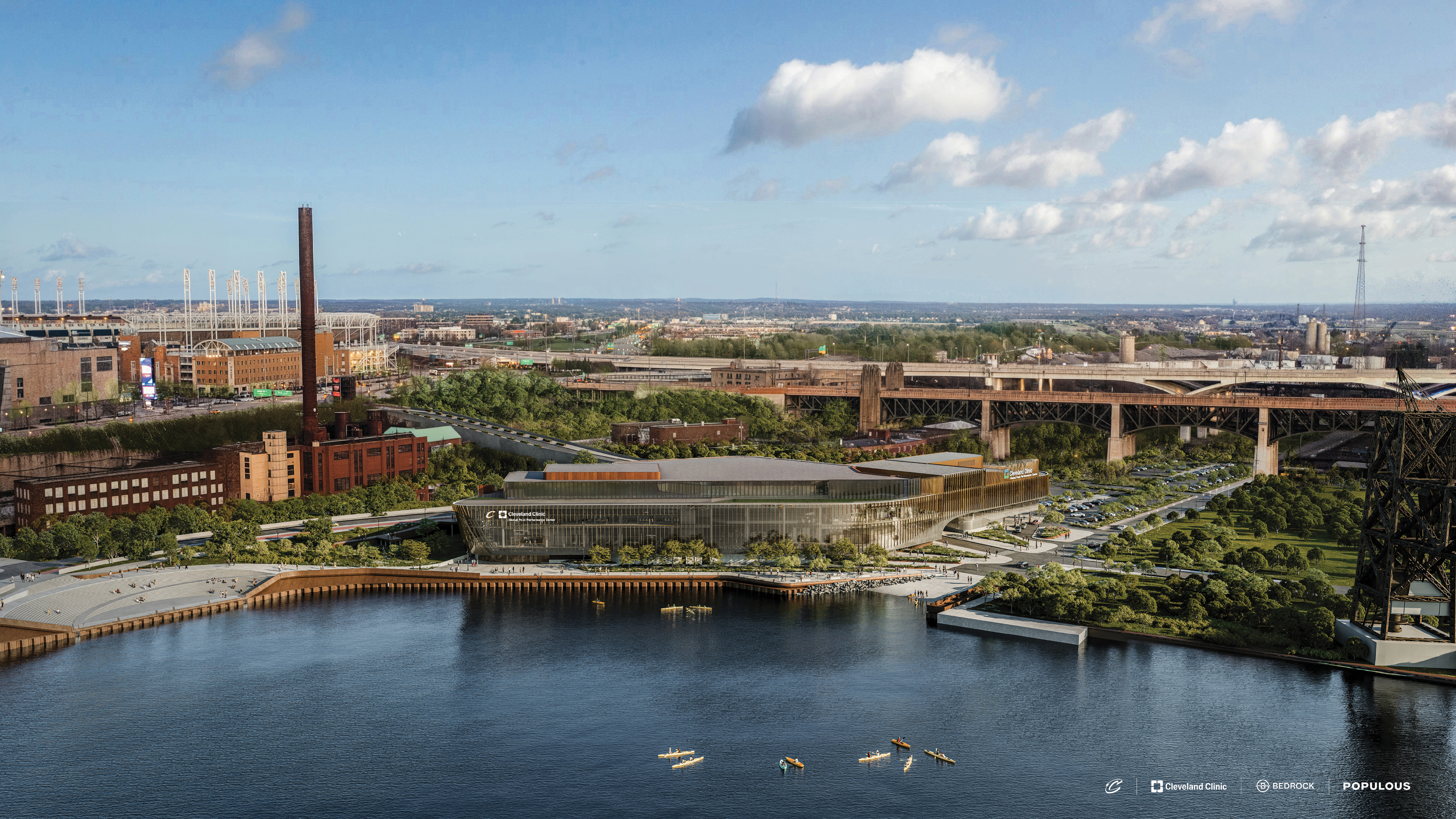 Cleveland Clinic, consistently ranked as one of the world’s top hospitals, the Cleveland Cavaliers, one of the NBA's most storied franchises and Bedrock Real Estate, one of the country’s leading real estate developers and city builders, are joining forces to introduce the Cleveland Clinic Global Peak Performance Center. The cutting-edge Cleveland Clinic Global Peak Performance Center will deepen the Cavaliers’ Championship-caliber culture by providing Cavaliers players and prospective players the most state-of-the-art training resources of any facility in the world. In addition to serving as the new home of the Cleveland Cavaliers, the Peak Performance Center will also be open to the public, serving as a vital community asset for all.Designed by Populous, a global architectural design firm, specializing in creating world-class elite athlete training environments, the development will anchor Bedrock's $3.5 billion Cuyahoga Riverfront Master Plan. The center will invite elite and everyday athletes from all corners of the globe to downtown Cleveland and further solidify the city's position as a global sports science and wellness destination. The Center will offer personalized expertise in training, treatment, nutrition, and recovery from Cleveland Clinic's professional medical specialists.