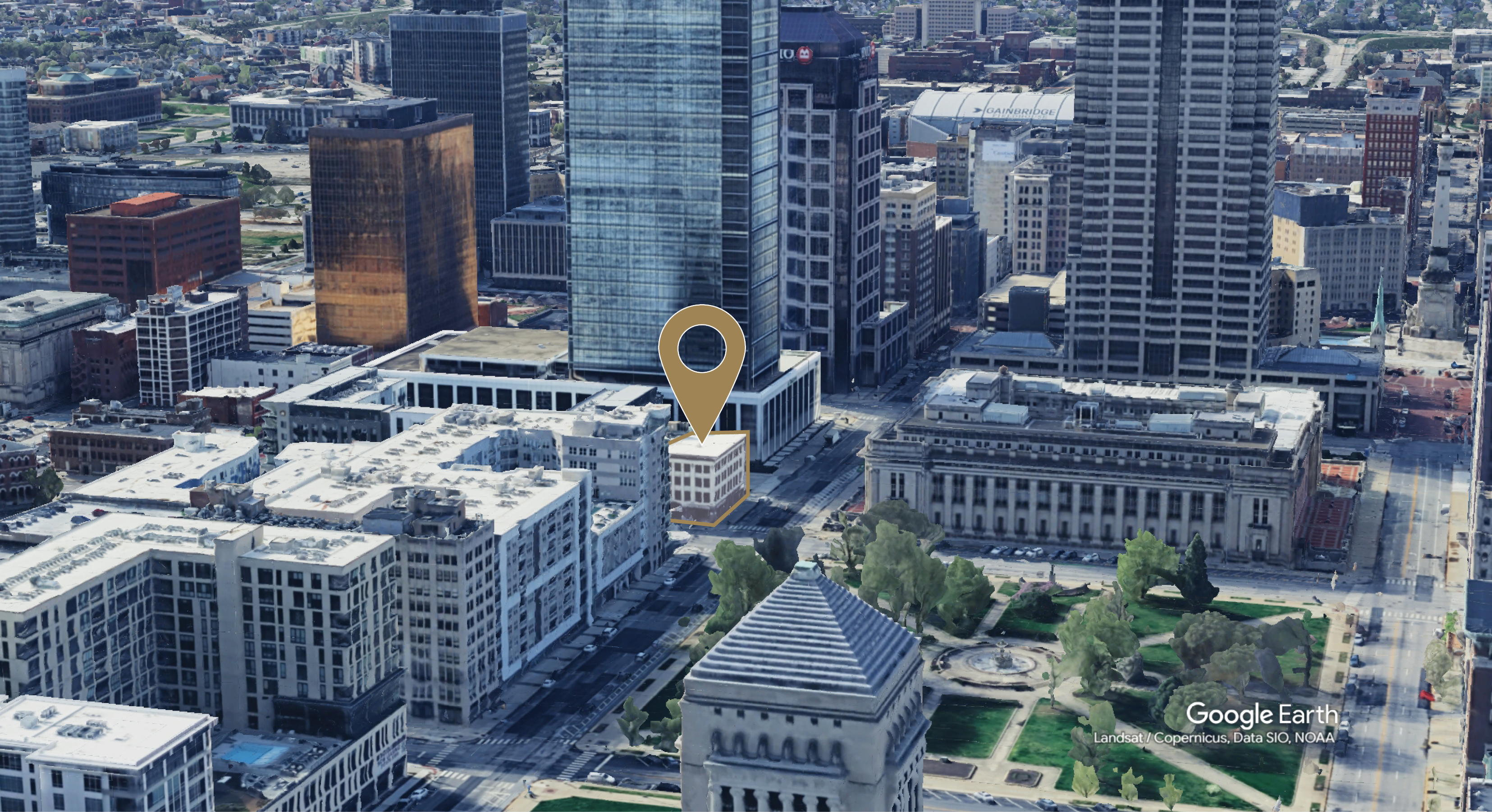 Panoramic perspectives of Downtown Indianapolis with an abundance of natural light, and open spaces for clients & co-workers to do business