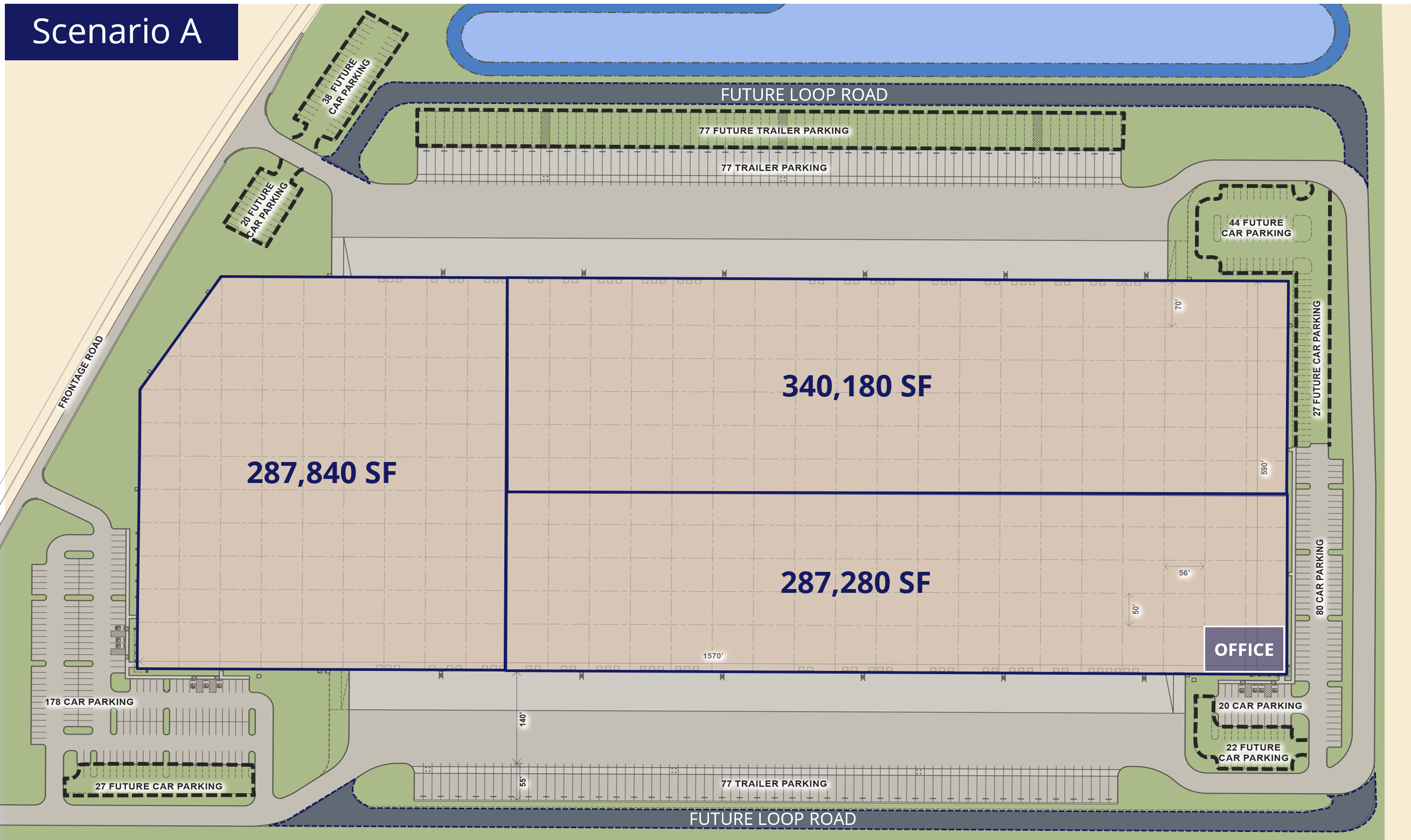 915,600 SF (1,570’ wide x 590’ deep)