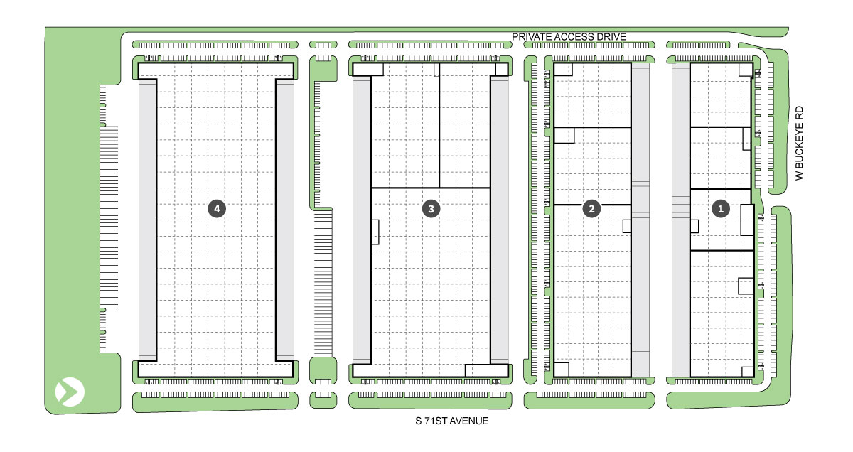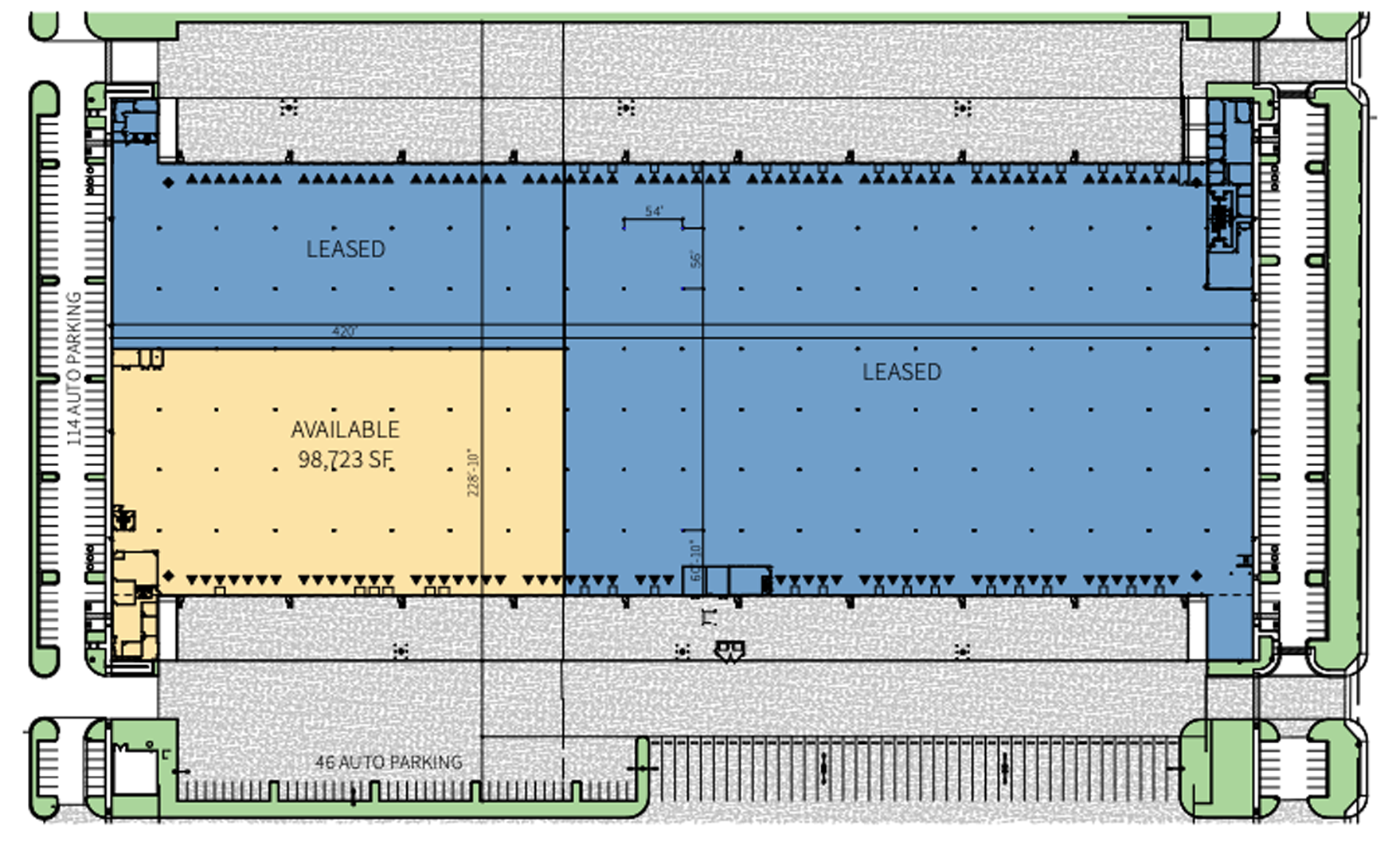 • Modern Building Specs – 36' clear heights, ESFR sprinklers, LED lighting, and secured truck lots