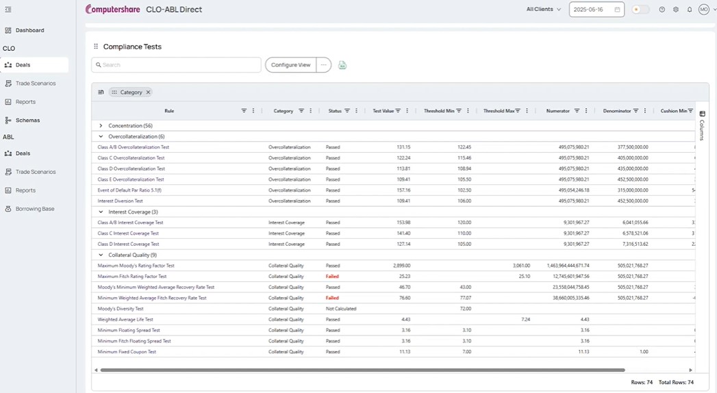 We pair experienced service teams with TrustConnect™ CLO-ABL Direct — a modern client portal that delivers transparent data, test calculations, and custom reporting. When so many paths can lead to confusion, Computershare puts you on the path of simplicity.