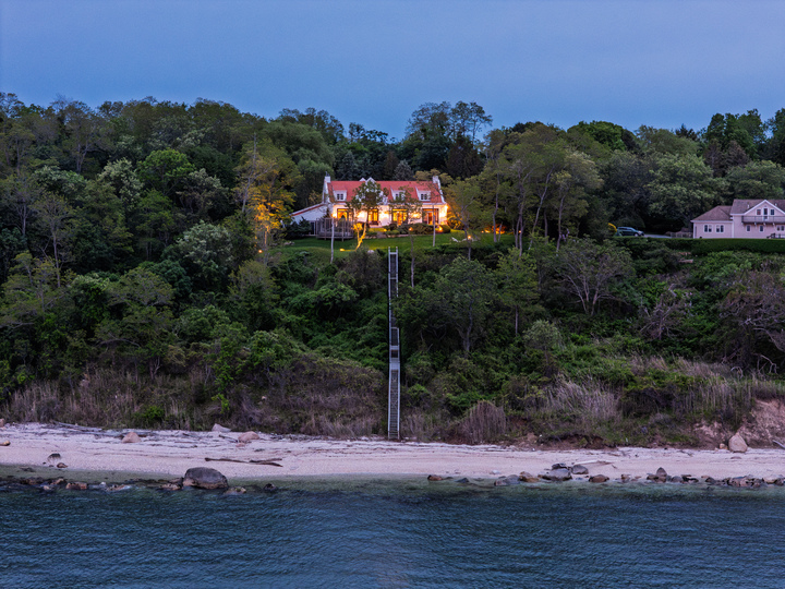 Perched high above the Sound, 215 Hillcrest Drive North in Orient boasts private stairs down to the beach below.