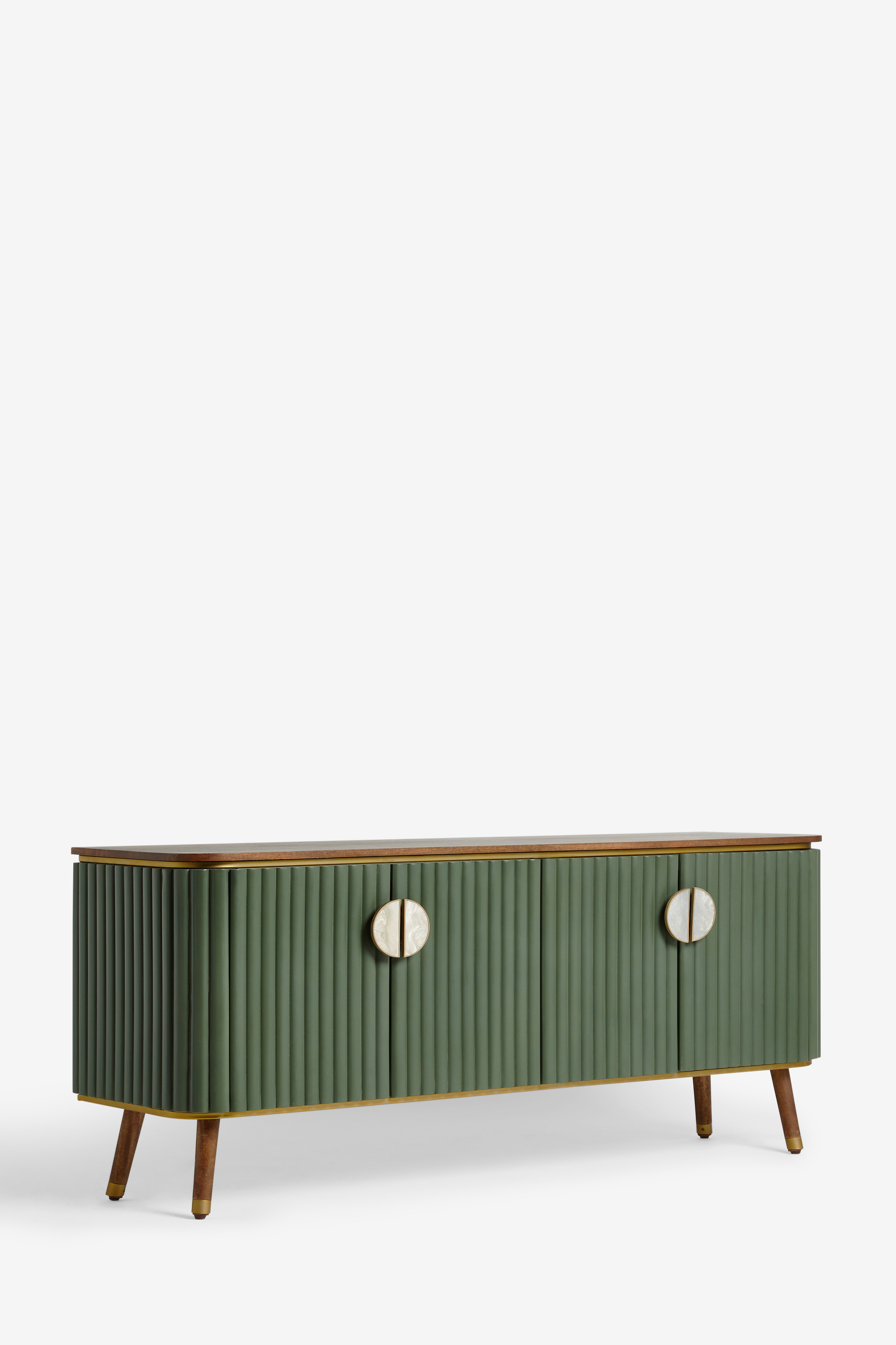 Crafted from a fusion of solid and veneered walnut with a brushed metal frame for a modern finish.