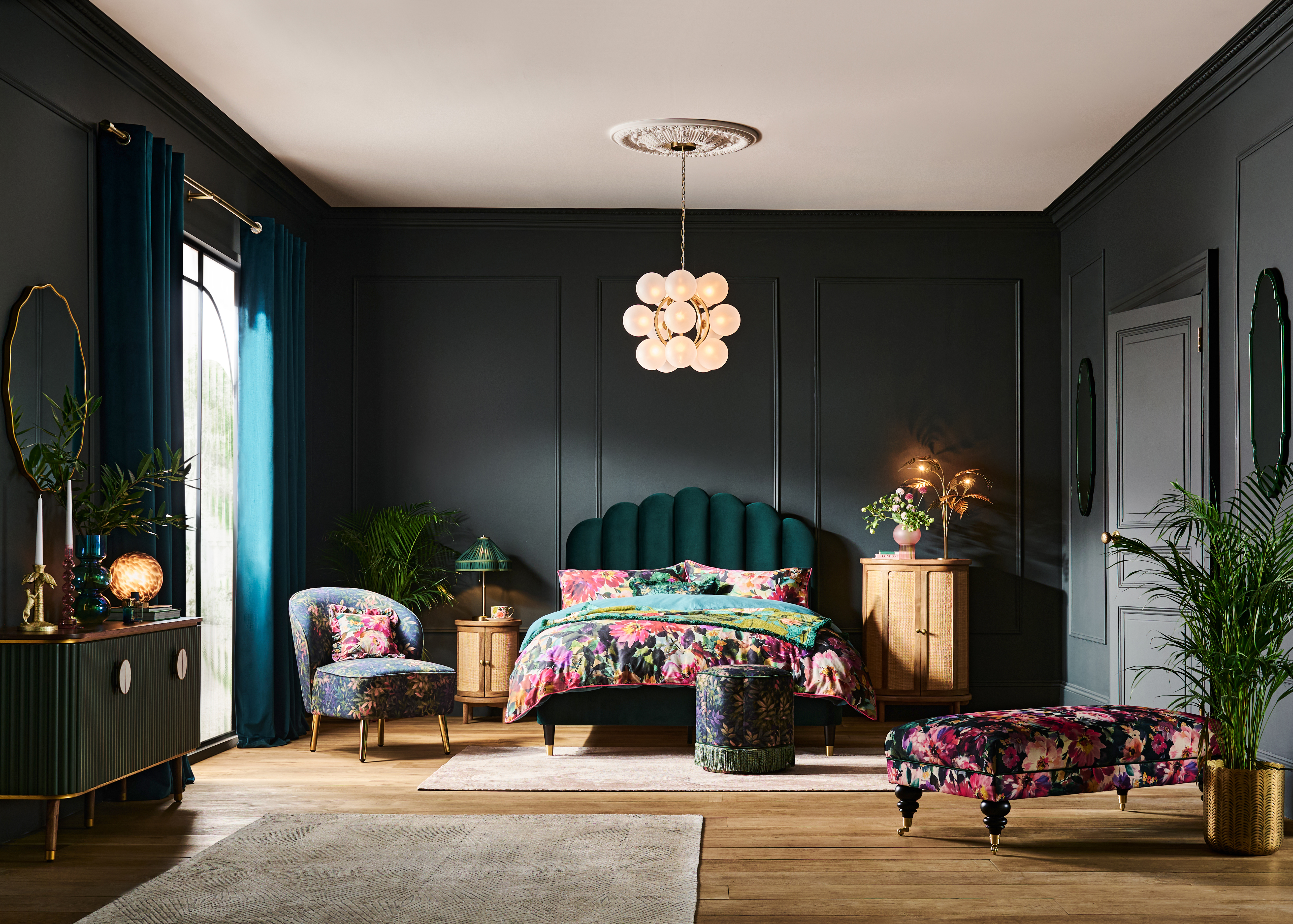 The padded arms make for a grander, more comfortable sit and the walnut frame creates a refined silhouette.