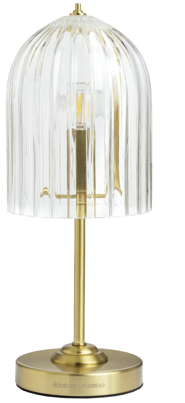 Made with ribbed, opal glass on a sturdy brushed metal tripod base, it will bring charm and warmth to any space.