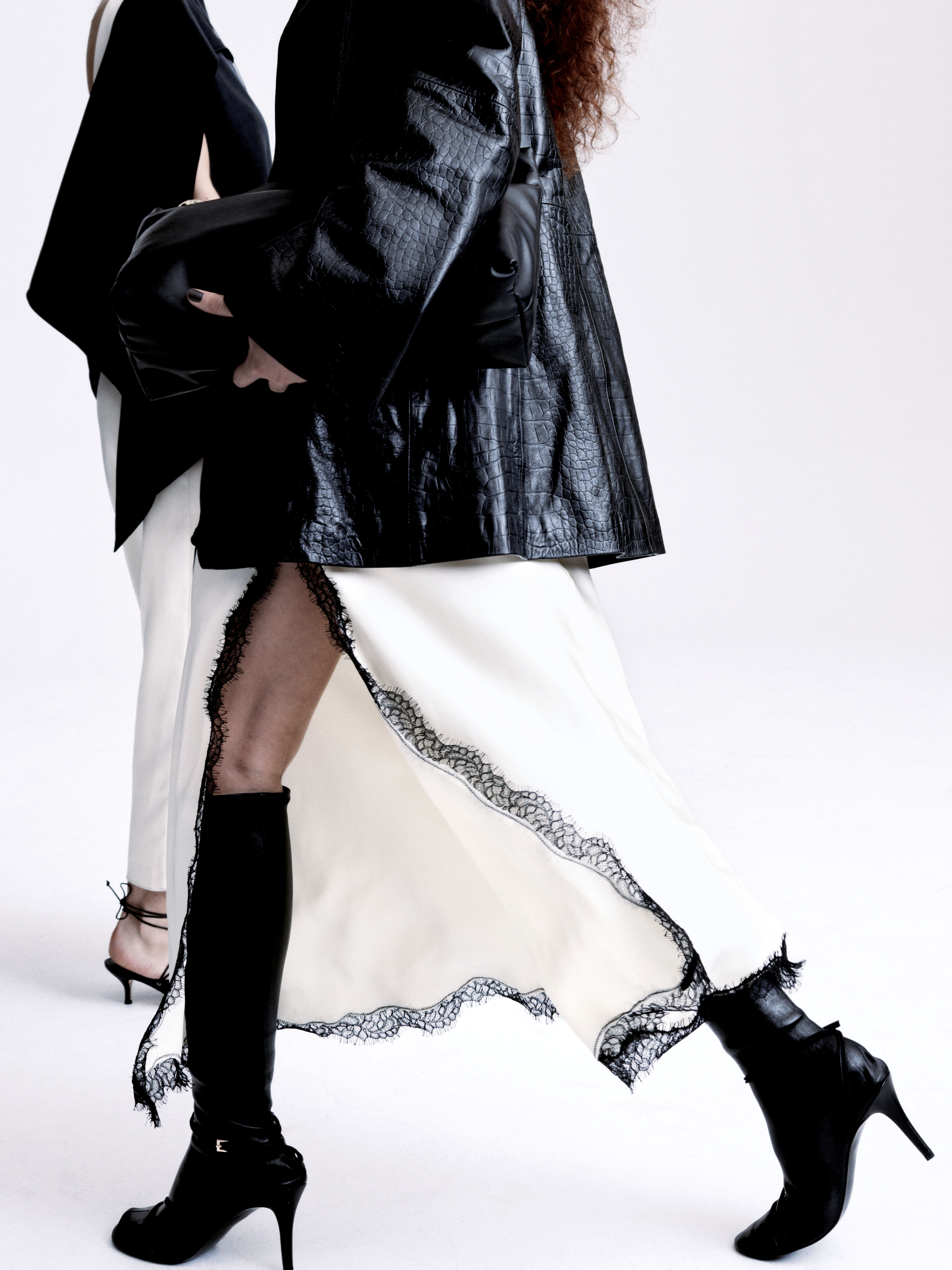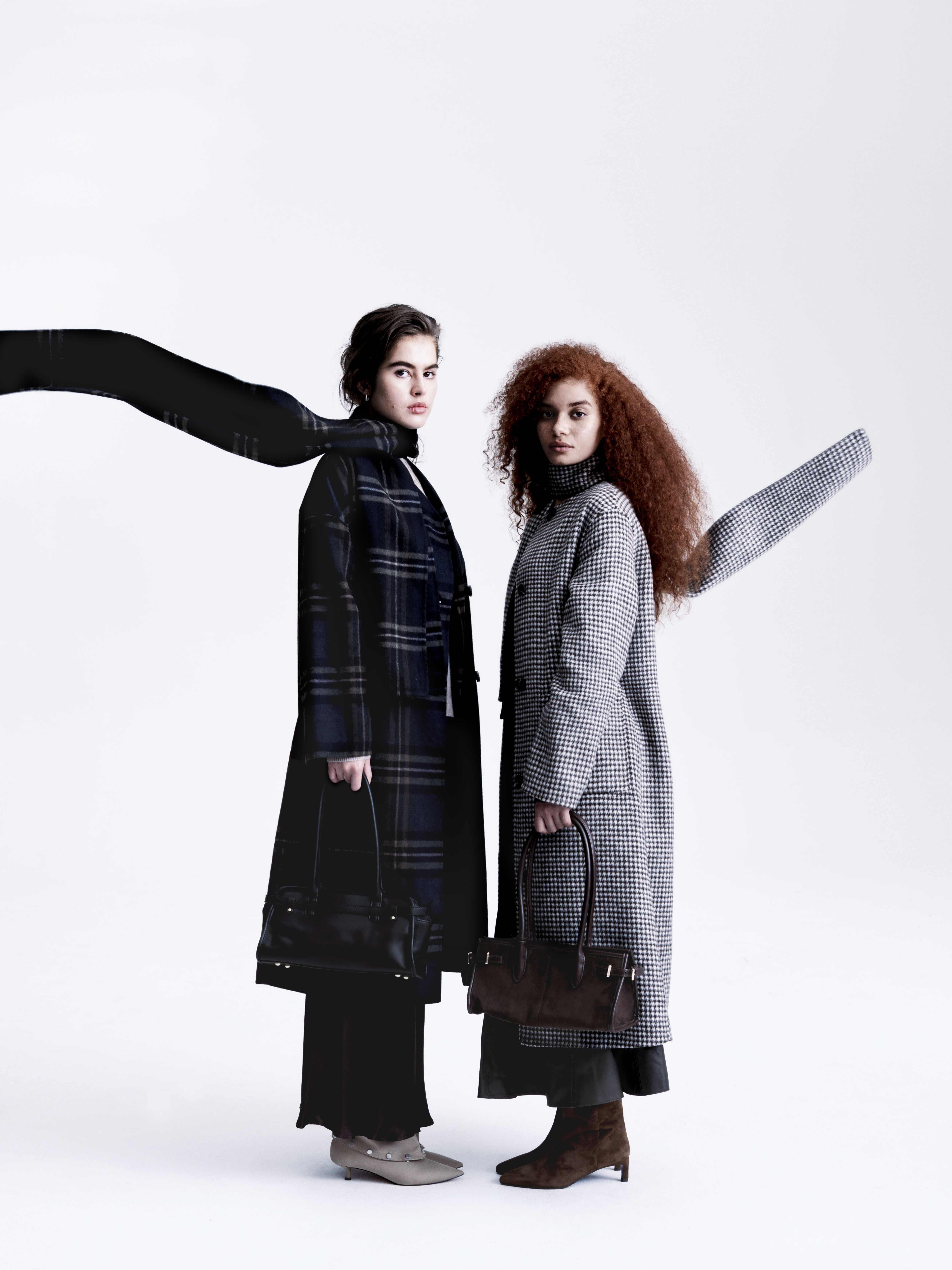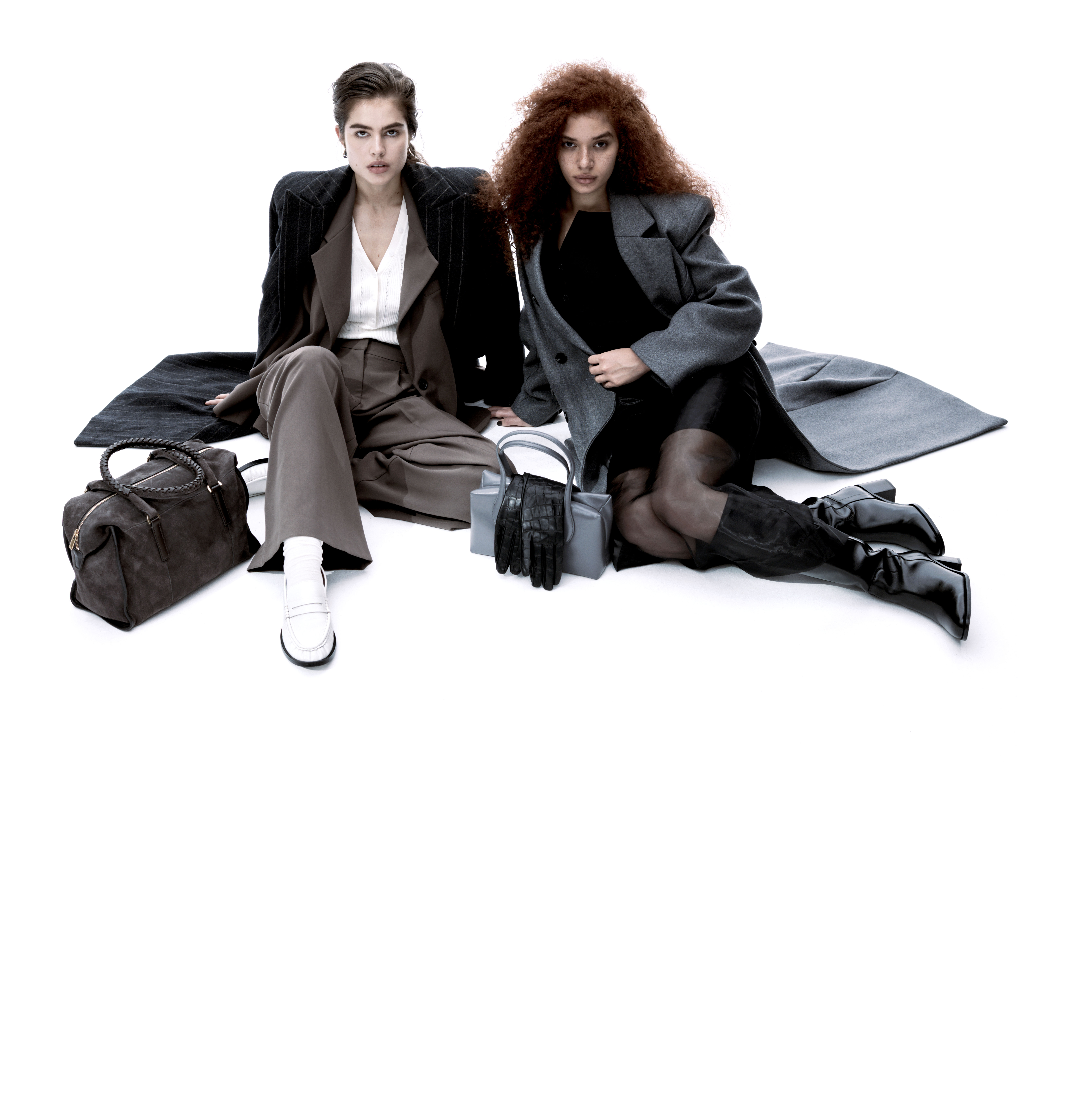 Lily wears By Anthropologie coat, ASOS Blazer and Trousers, & Other Stories bodysuit, Calzedonia socks, Mint Velvet loafers, Reiss bag, Missoma earringsRayan wears & Other Stories coat, Aligne blazer, Next skirt, Sezane boots, Mango bag and gloves