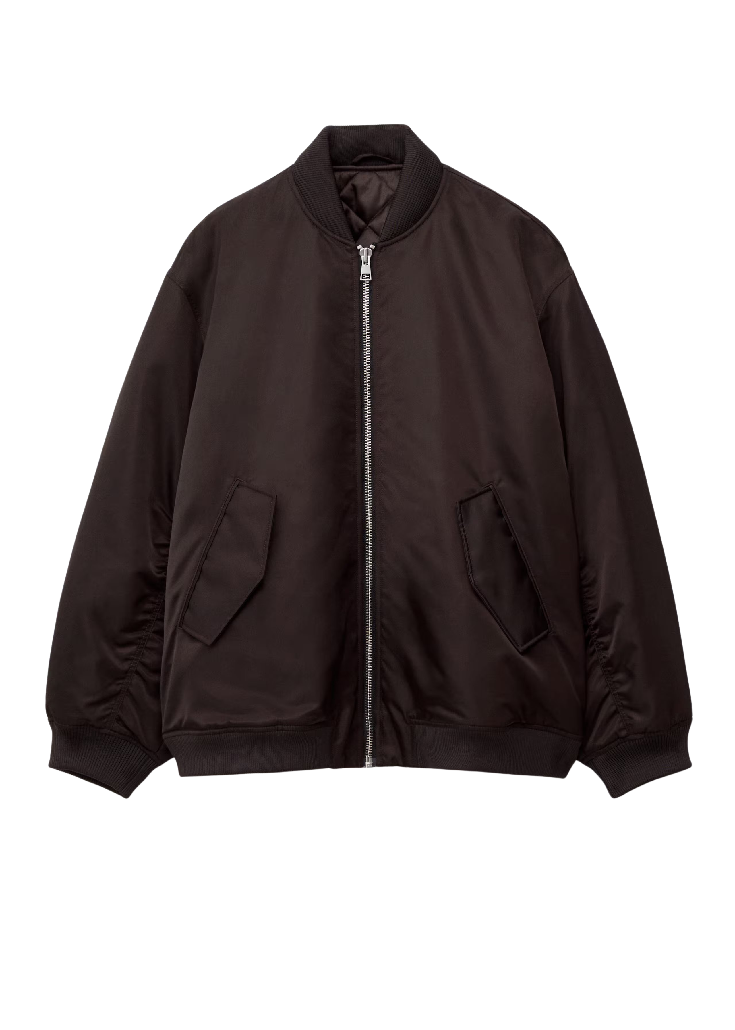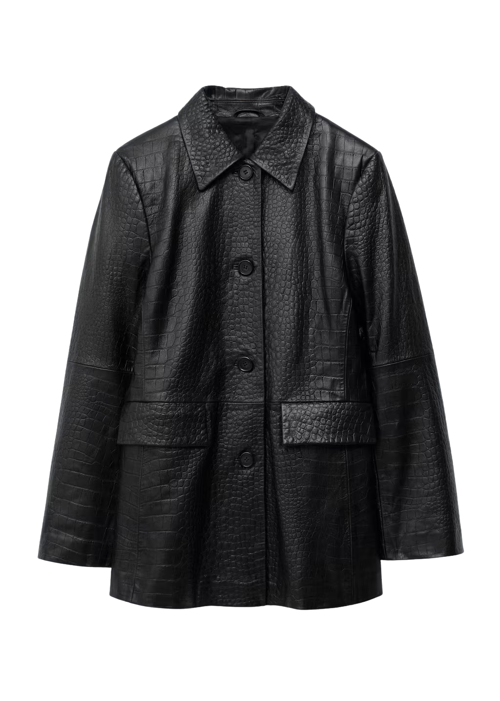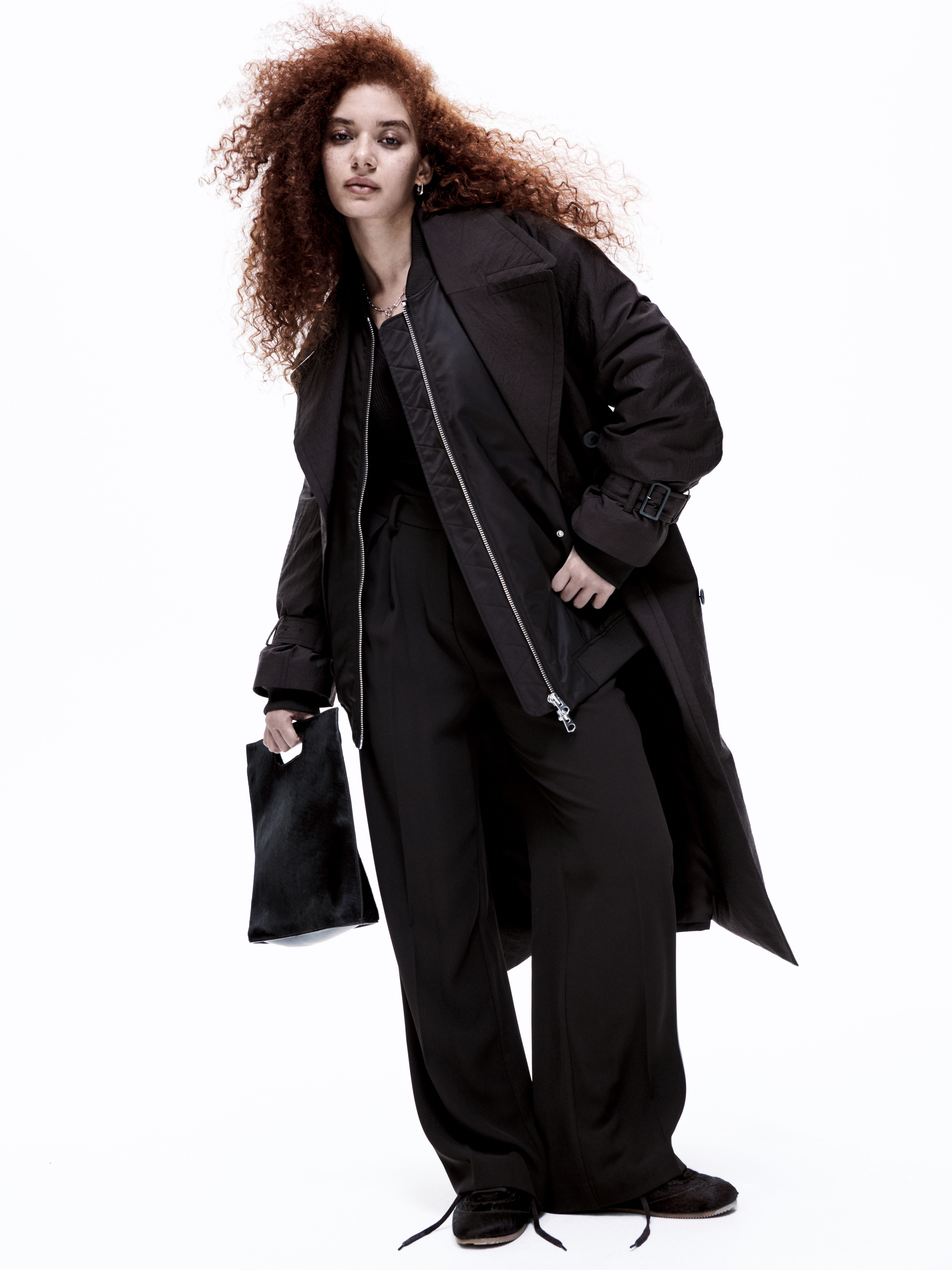 Rayan wears Mango coat, & Other Stories jacket and bodysuit, Mint Velvet trousers, COS trainers and bag, Lines and Current necklaces