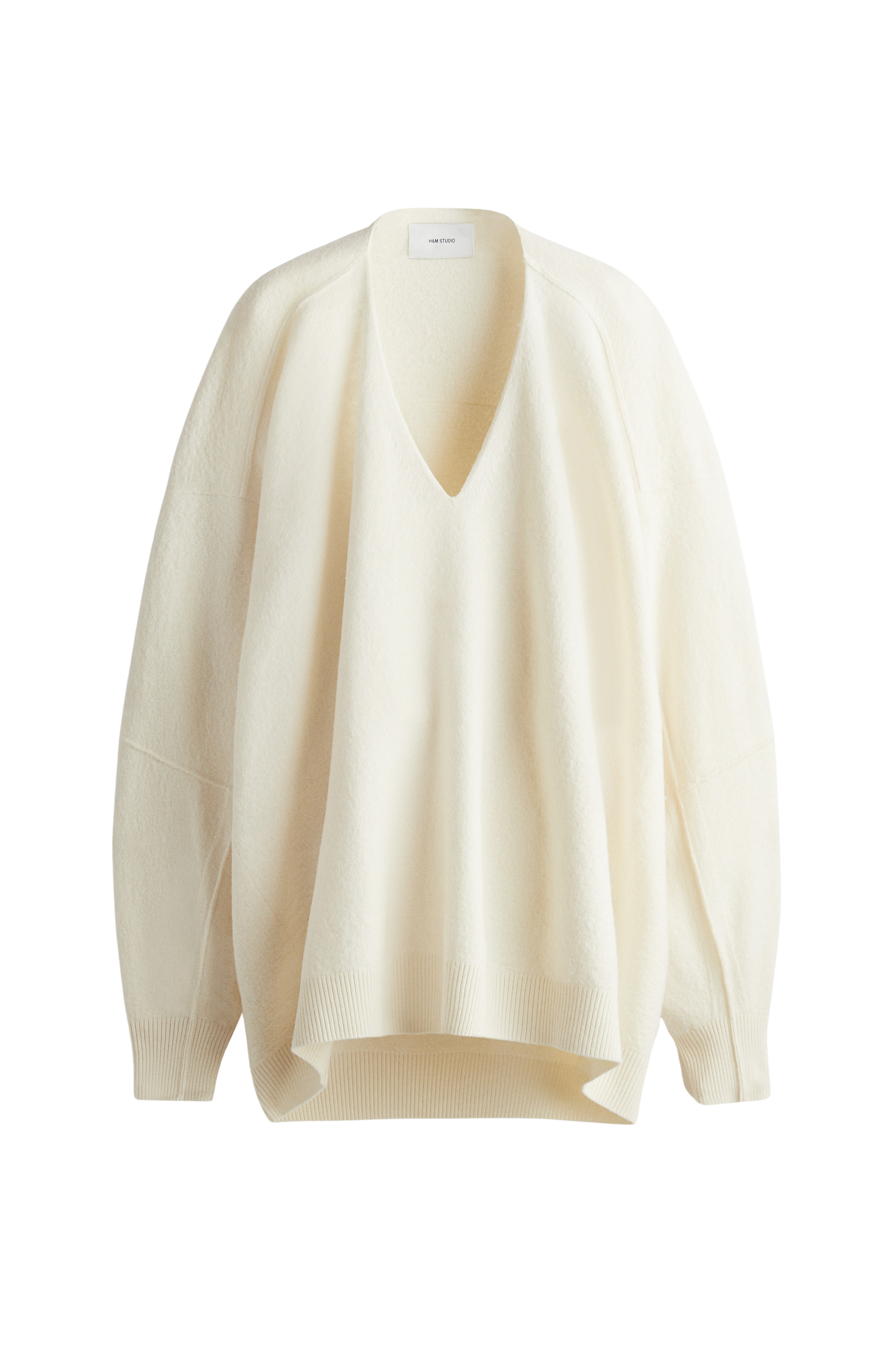Rayan wears H&M jumper, shirt, dress, boots and bag