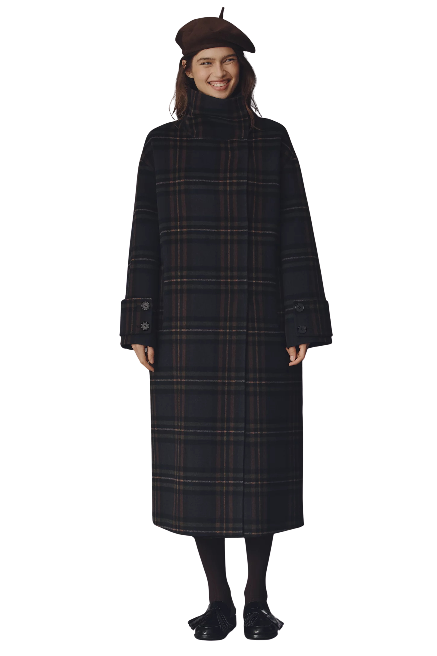 ANTHROPOLOGIE Wool-Blend Check Coat