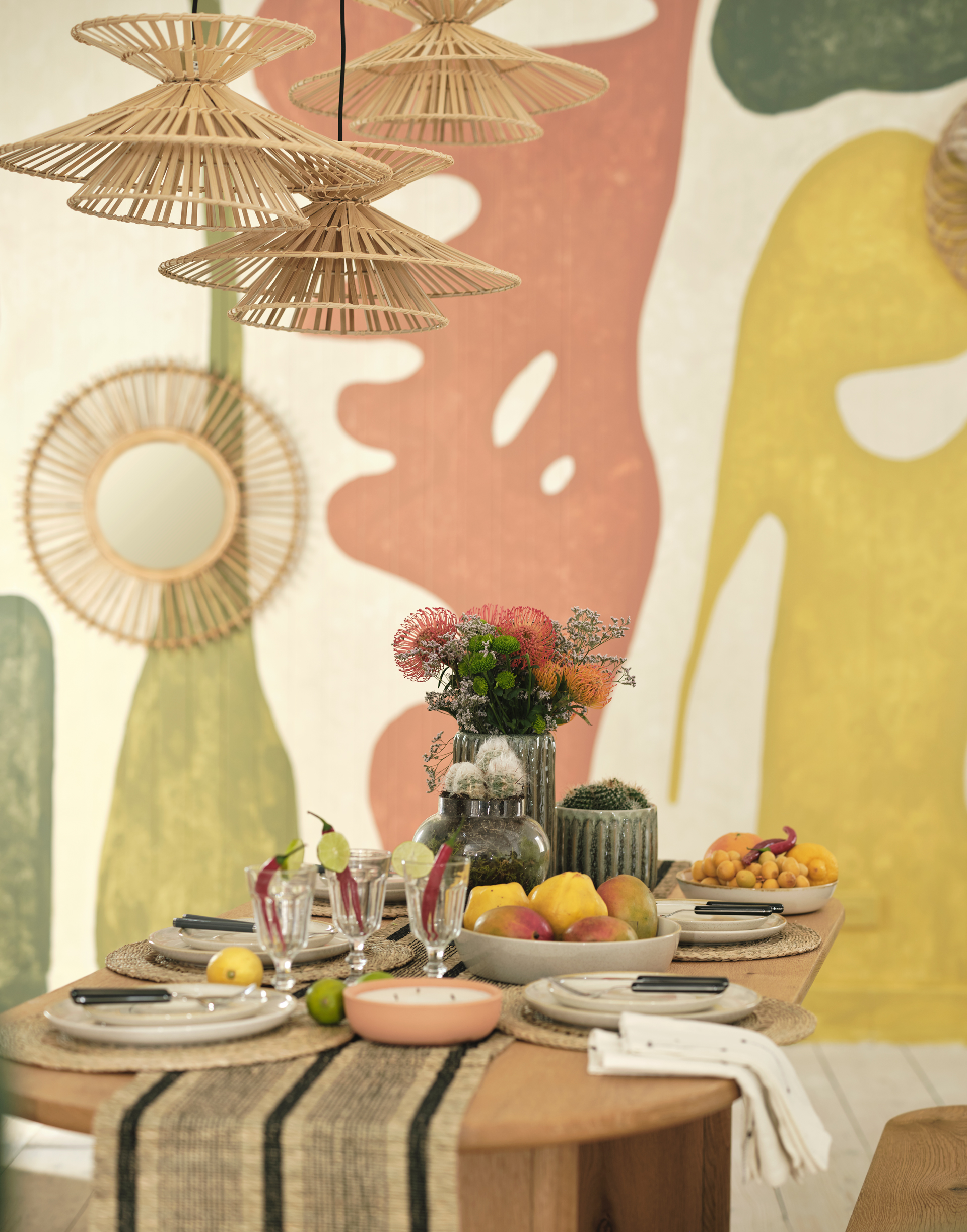 Fruit and flowers are pre-packaged pops of colour that bring simple summer energy to table settings – so, be bold with them. Bright bouquets will bring your table alive in ceramic vases from the new M&S Home collection while bowls overflowing with fruits add a seasonal touch.