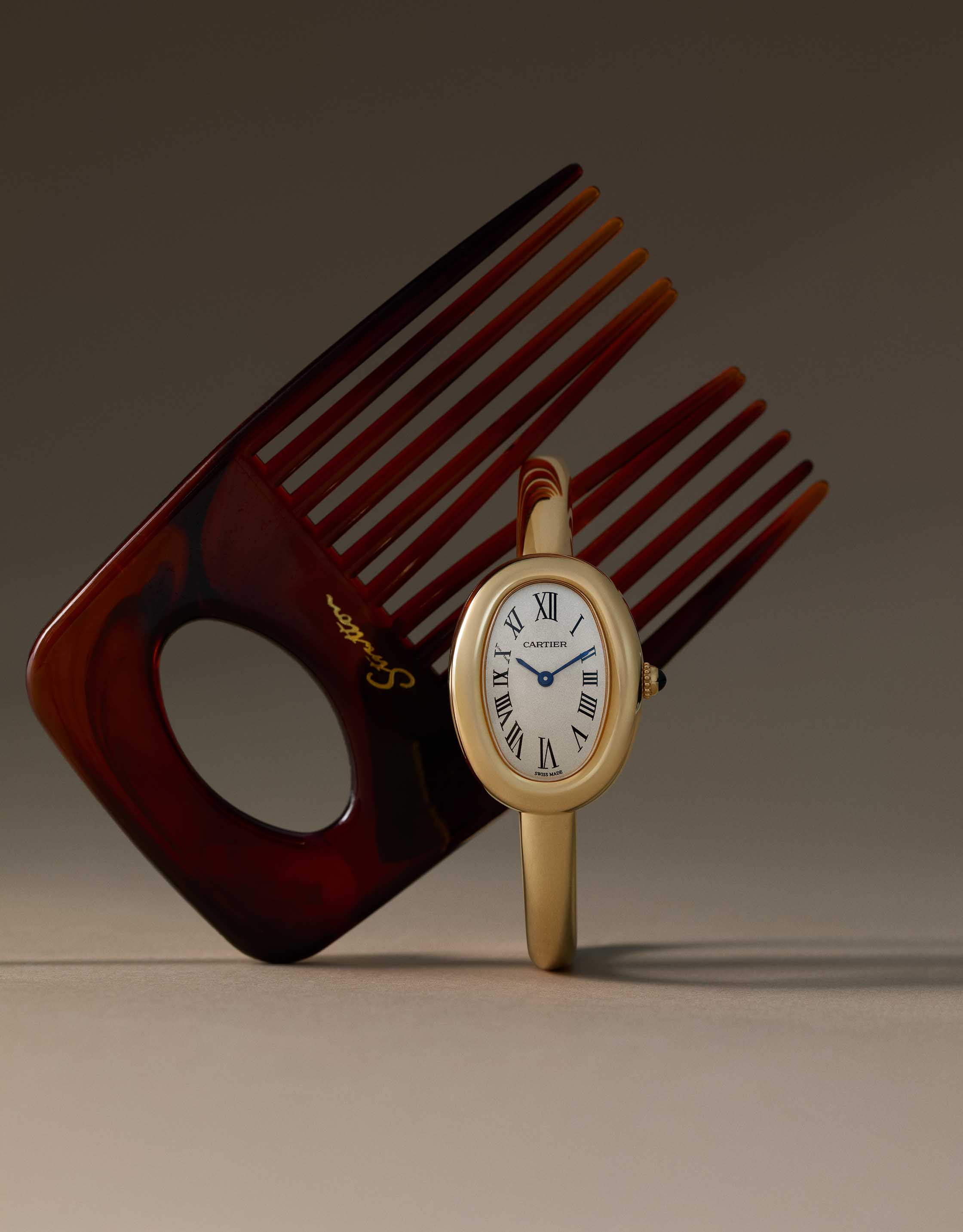 The Cartier Baignoire collection – defined by playful oval dials – has been enjoying a revival of late, thanks to the introduction of this solid gold bangle style. It sits somewhere between gold bangle and dress watch, and can be secured to the wrist by a pleasant snap that locks the hinged bracelet directly into the case. It’s the perfect jewellery watch for those who lean more towards jewellery than watch.