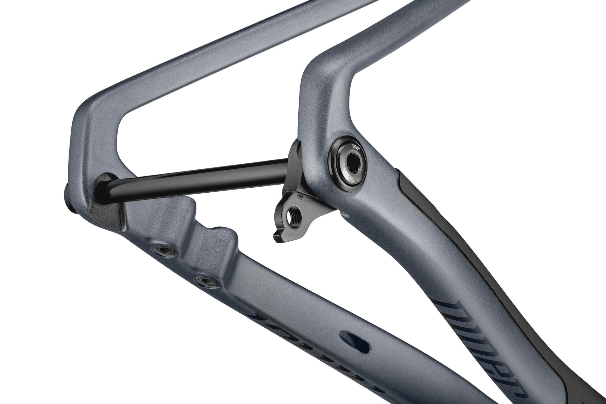 Want to go further? There are mounting points for a top tube and frame bag, as well as three water bottles. Niner has deliberately kept the number of mounts smaller than on the RLT 9 RDO and not included fork leg mounts, so there’s less chance of snagging on more technical forest trails.