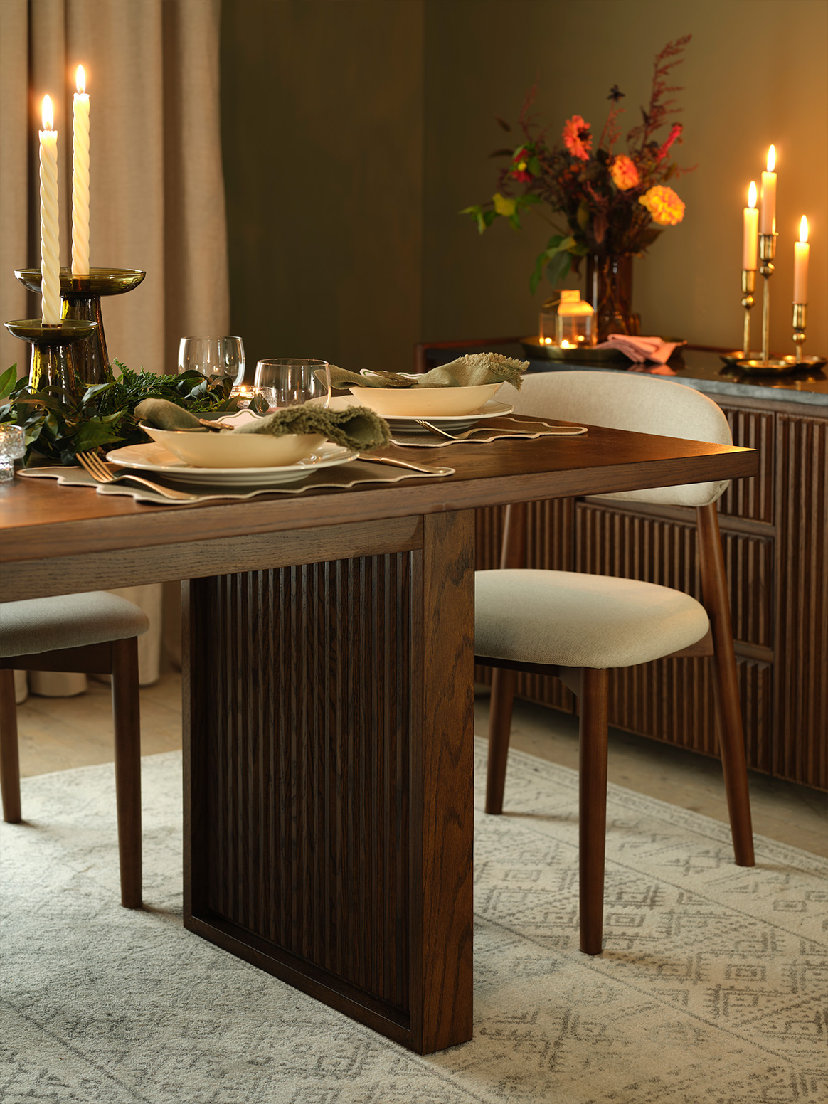 A dining table is ideal for bringing the whole family together, but it is also the perfect spot for an autumn date night once the kids have been tucked into bed. Take over a corner of the family table, lay it with candles and olive green placemats and enjoy some much-needed quality time together, whether it’s over a home-cooked meal or a dine-in for two from the supermarket.