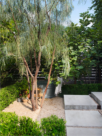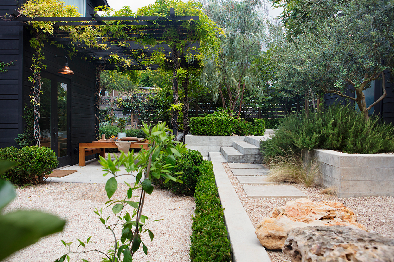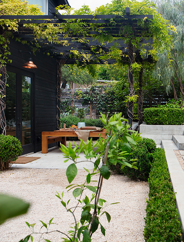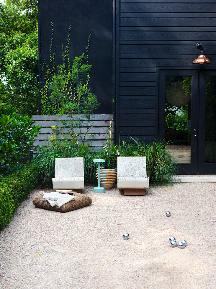 This dreamy yard was really a product of necessity. During the pandemic, the family’s dining room morphed into a playroom, leaving no space for actual dining. Spitler’s solve: A 6-by-6-foot outdoor table, made of fir and inspired by Donald Judd, for socially distanced suppers. Meanwhile, a sleek daybed, a firepit, and a stock-tank pool ensure the area is usable every other hour of the day.