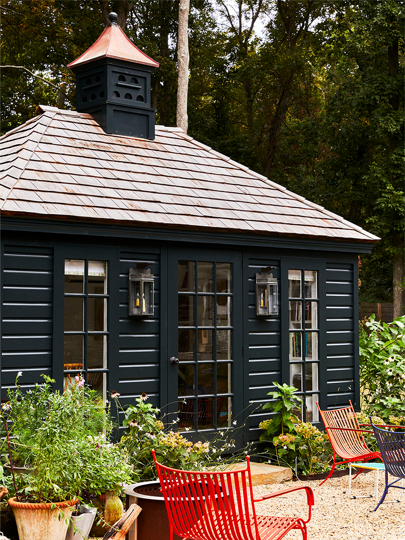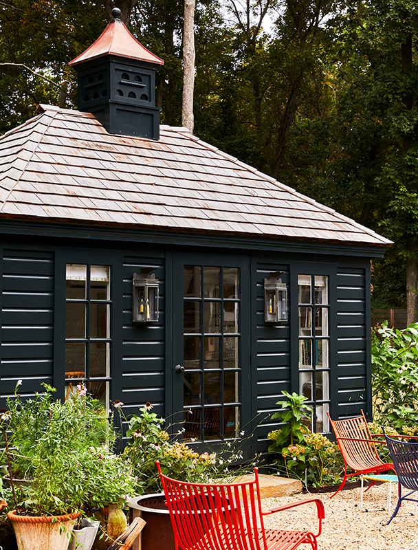 Berick and her husband made a pretty epic deal: She could have her country cottage if he got a backyard office. The latter—a shed purchased from a local builder—has just enough room for a desk and a daybed and has since become a space for both parties, depending on who has more meetings. Beyond, a concrete plunge pool and a plot of Berick’s beloved dahlias are reminders to enjoy some midday downtime.