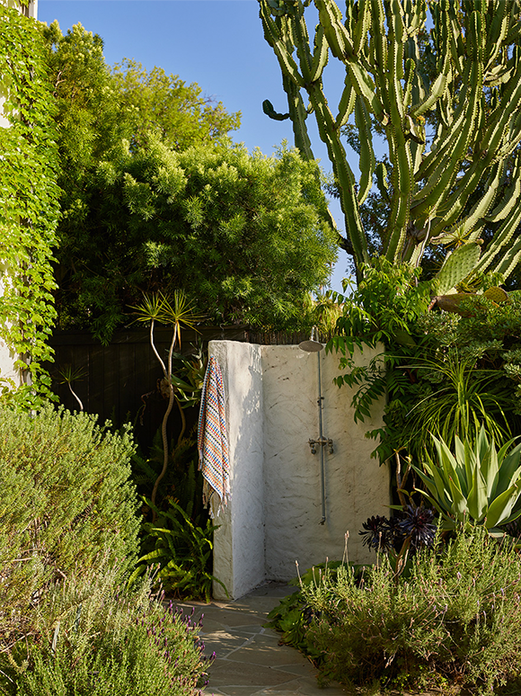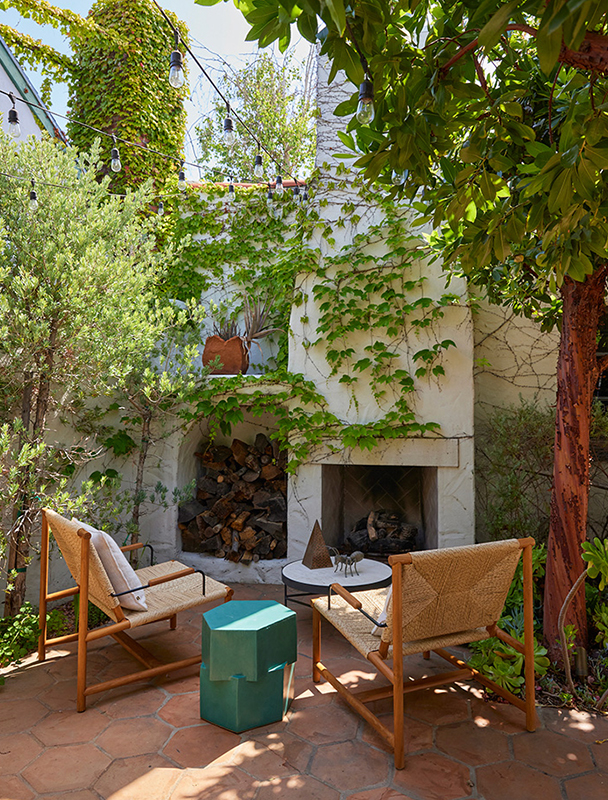 The courtyard’s gnarled, 100-year-old olive tree signaled to Lawson that this home was “the one.” It also leads you into the heart of the Spanish Revival house, so when the doors are open, the patio becomes an extension of the living room. “I can lie on the couch and watch TV, but it’s like I’m outside,” Lawson says. “I can feel and hear nature; this is a sanctuary from the city.”